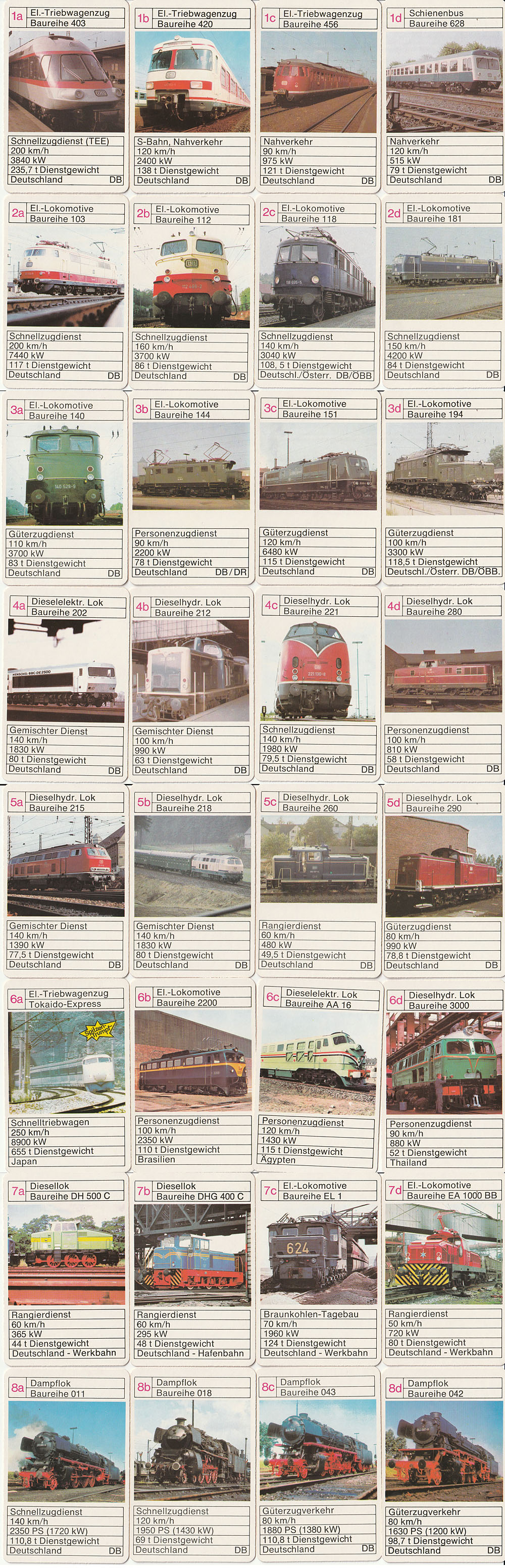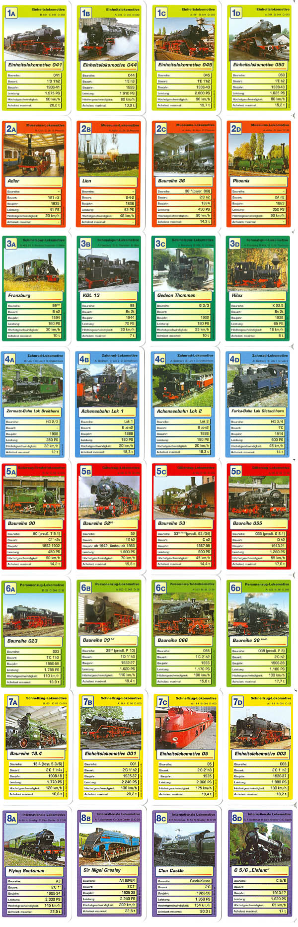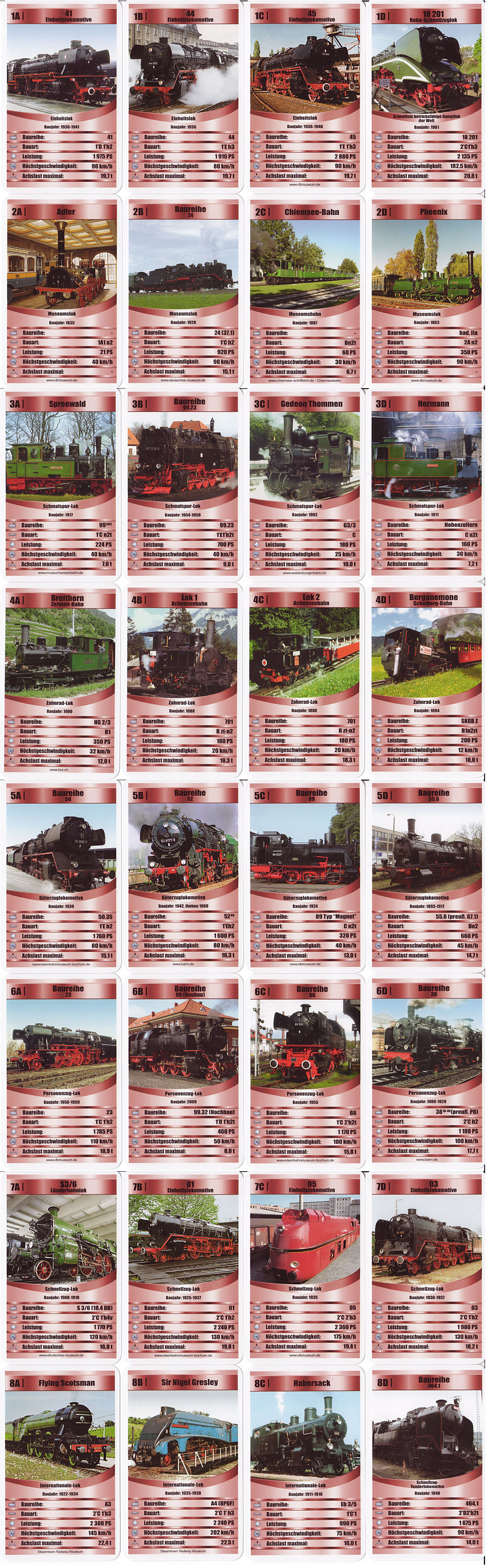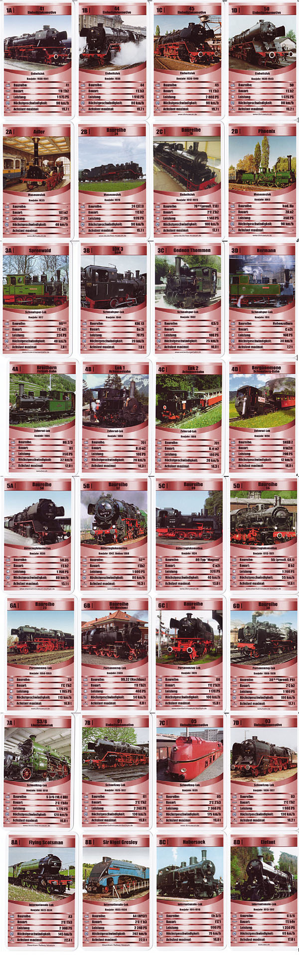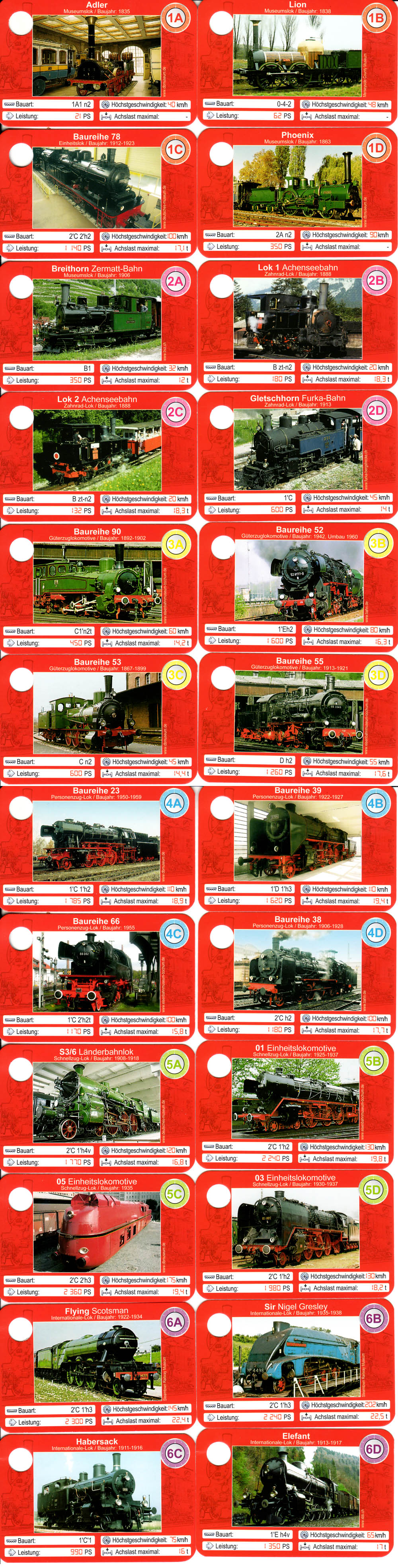 Zum Vorjahresquartett “Dampfloks gleiches Design, nur 2 Karten geändert (3D und 8C).