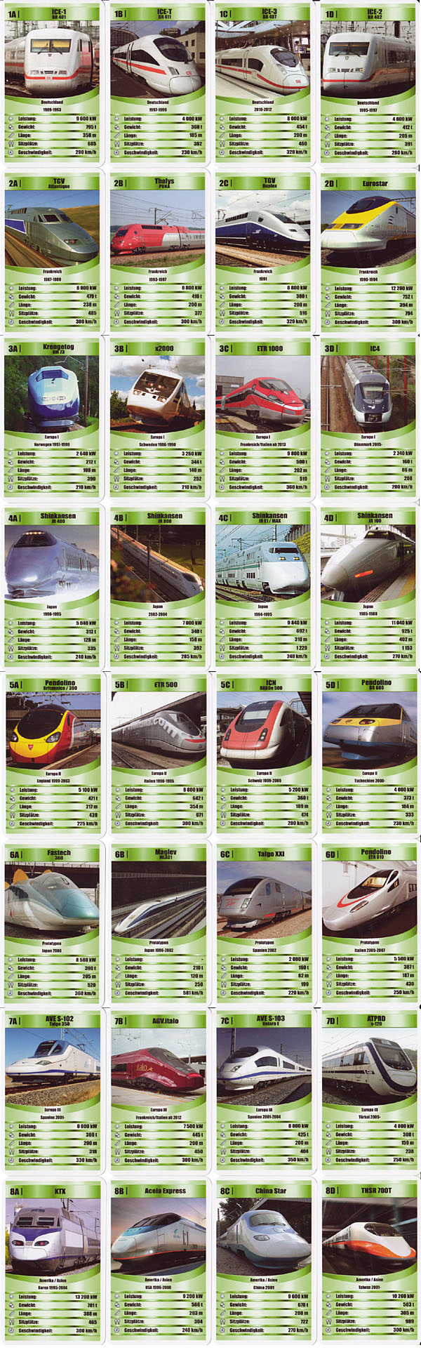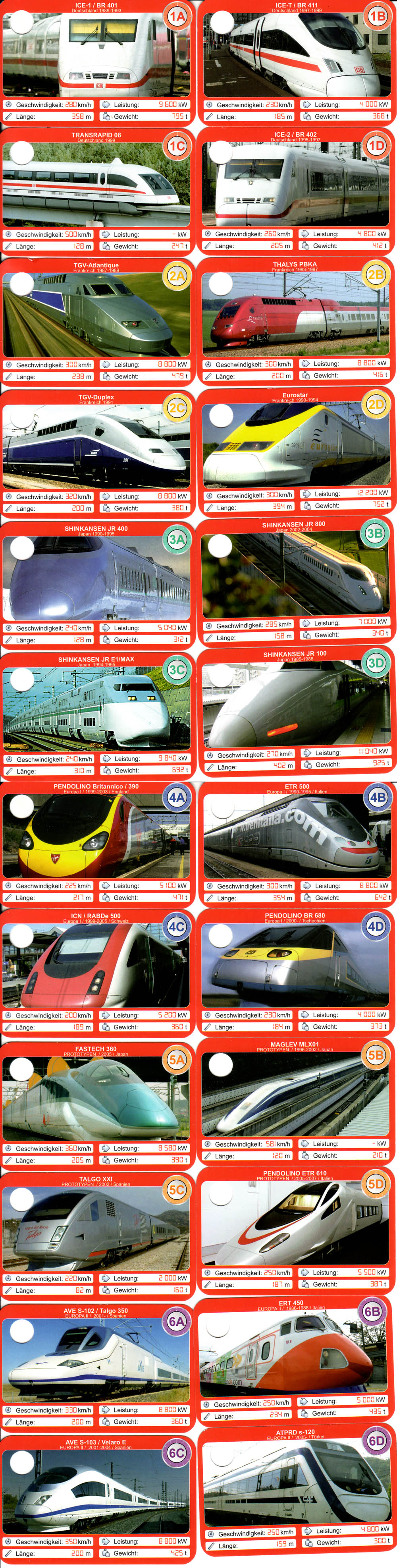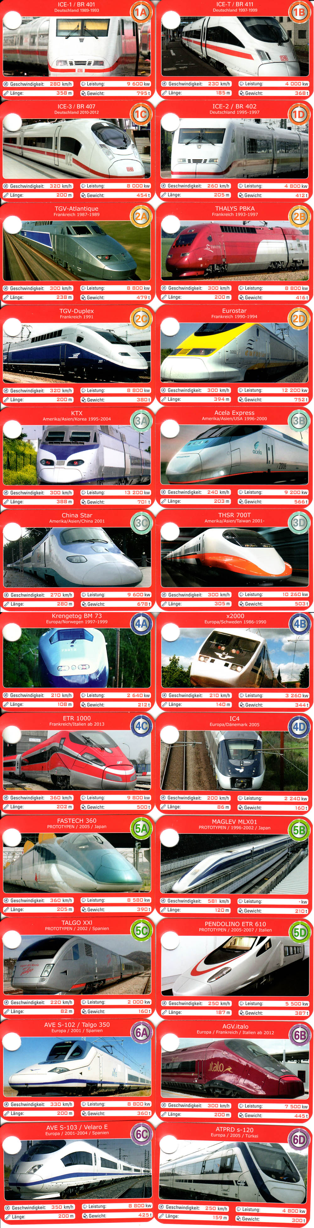 Inhalt fast identisch zum Vorjahresquartett “Hochgeschwindigkeitszüge” von 2013.