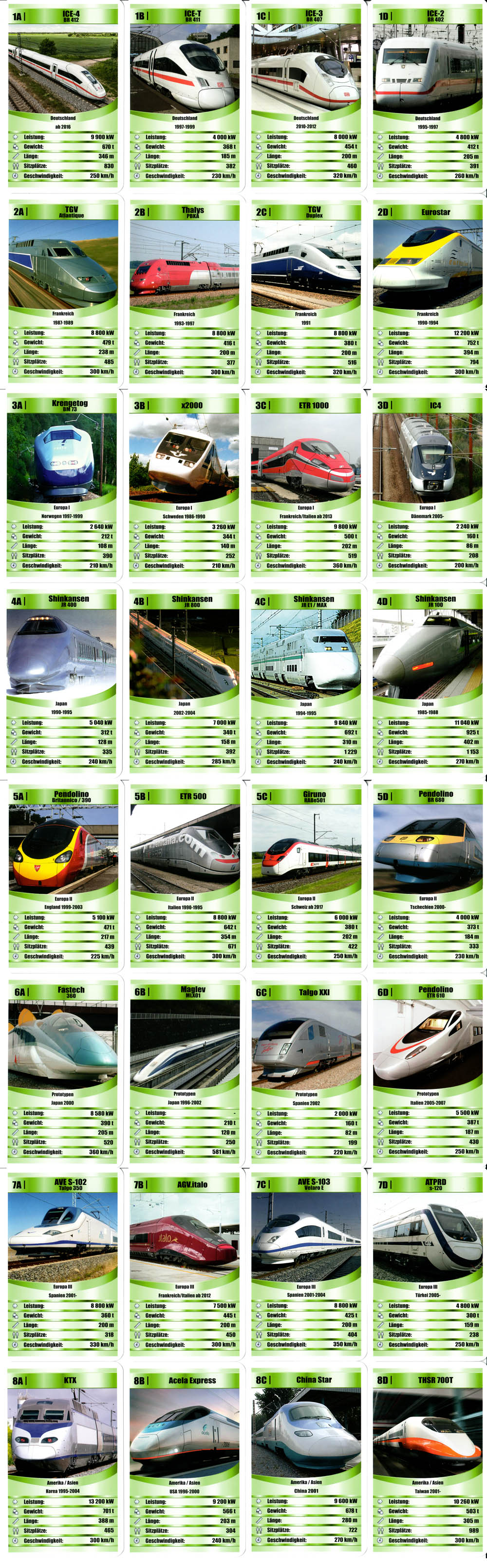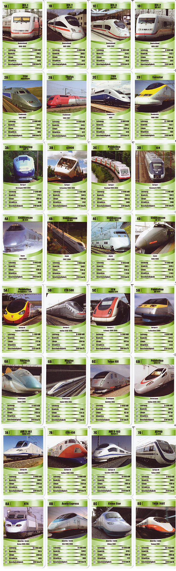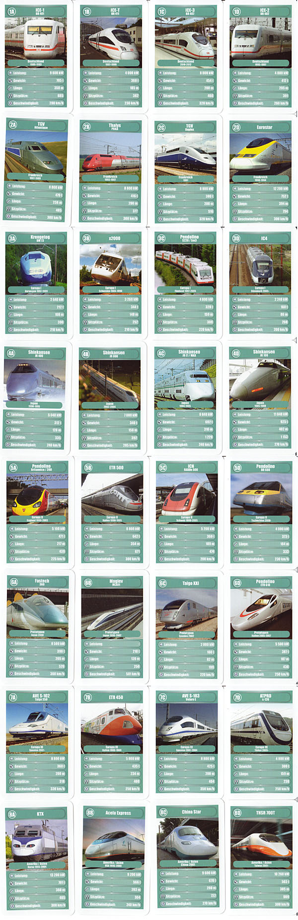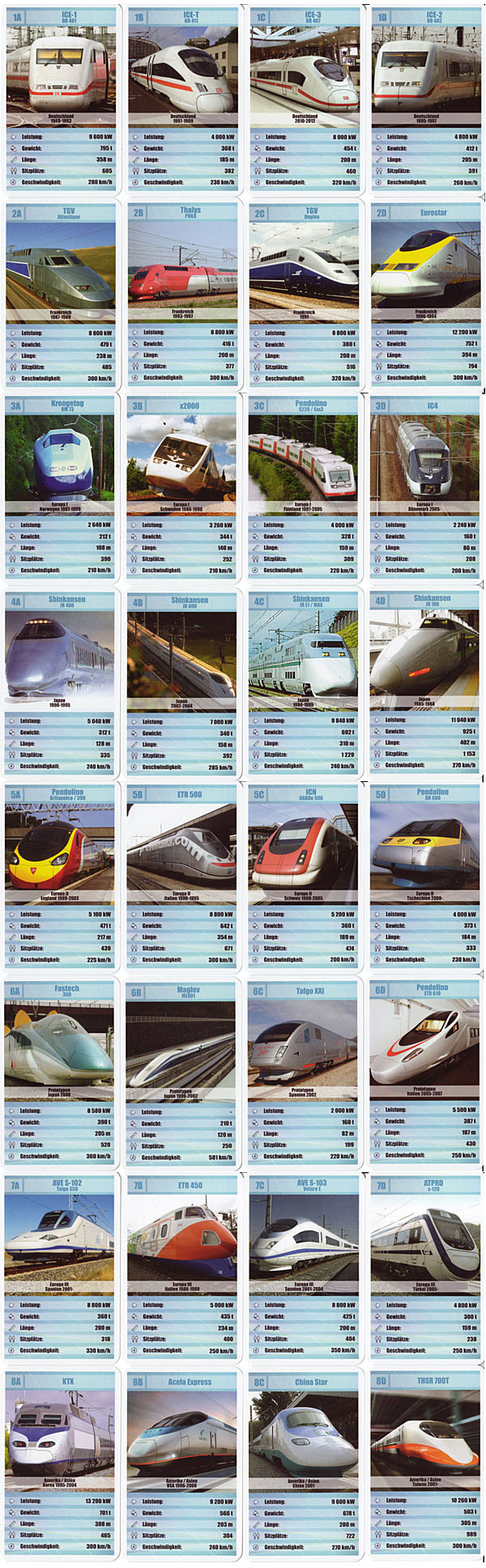 Inhalt fast identisch zum Vorjahresquartett “Hochgeschwindigkeitszüge” von 2013.