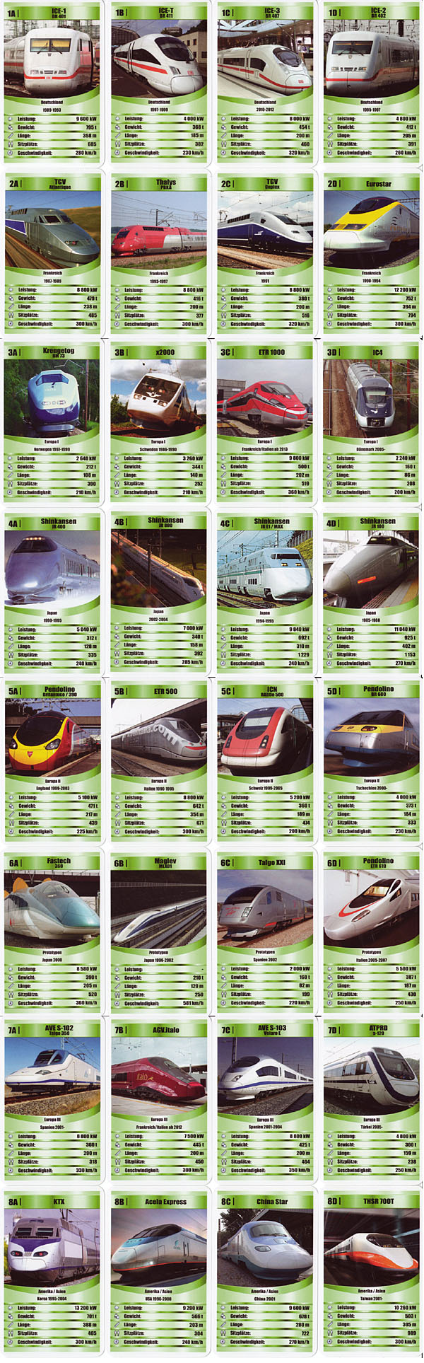 Karten zum vorhergehenden Karabini verändert. Moderne Schnellzüge aus aller Welt,
