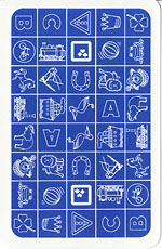 Karten und Deckblatt wie vorstehendes Spiel. Rückseite blau.