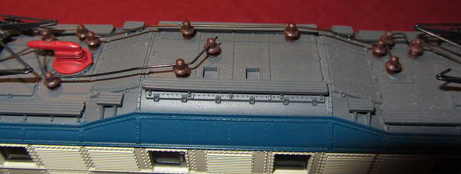 Da die Modelle innerhalb kurzer Zeit erschienen sind, befinden sie sich auch in der Gestaltung auf einem einheitlichen Stand. Das Gehäuse besteht aus Kunststoff und trifft die jeweiligen Vorbilder gut. Auch gerade die “ähnlichen” 118er und 119er sind keine einfachen Variationen in der Beschriftung, sondern hier wurden die Lüfter vorbildgetreu abgeändert, ebenso die Lampengestaltung und es wurde der markante Dachaufbau der 119 berücksichtigt. Es wurden also unterschiedliche Gehäuse geschaffen. Die Gehäuse sind zudem auch fein detailliert und mit einer Vielzahl von nachgebildeten Lüftern, Klappen und Nieten versehen. Aus heutiger Sicht sind die Nietenköpfe etwas groß geraten und auffällig, aber das unterstützt eher noch das Erscheinungsbild einer “Altbau-” E-Lok und war zum Produktionszeitpunkt vermutlich nicht noch kleiner umzusetzen. Das ist auch nicht störend, aber im direkten Vergleich mit Vorbildfotos fällt es eben etwas auf. |