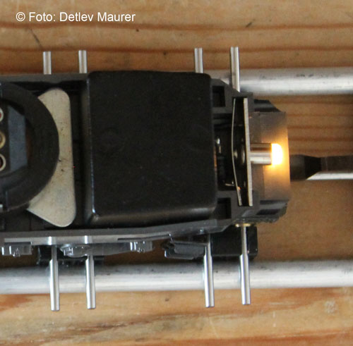 Rivarossi 1094 und das Gehäuse kann problemlos wieder darüber montiert werden. Diese LED-Birne leuchtet auch schon bei sehr geringer Spannung so hell, dass die Lichter quasi schon bei stehender Lok ausreichend hell