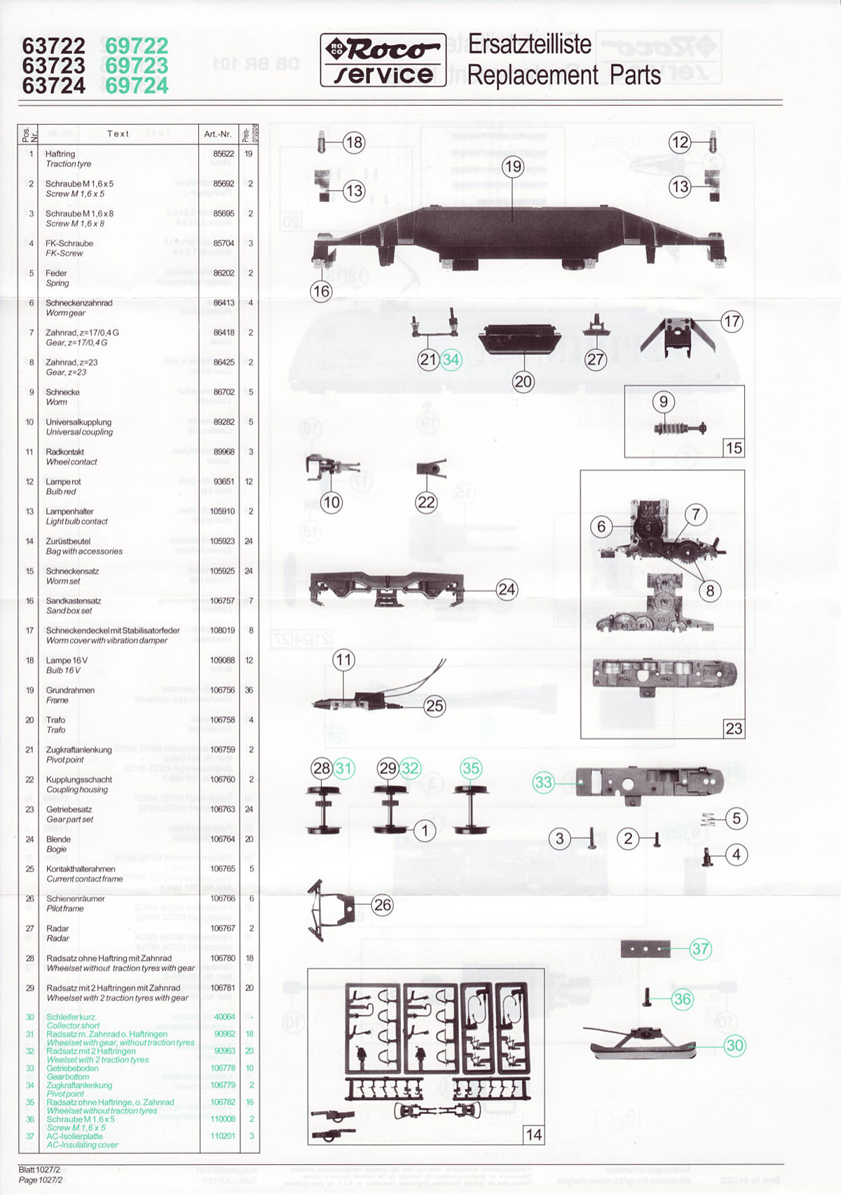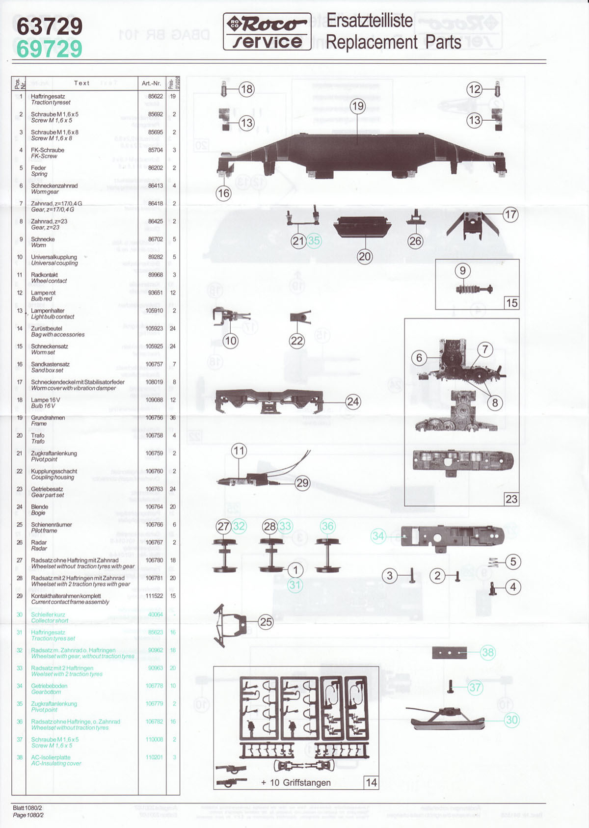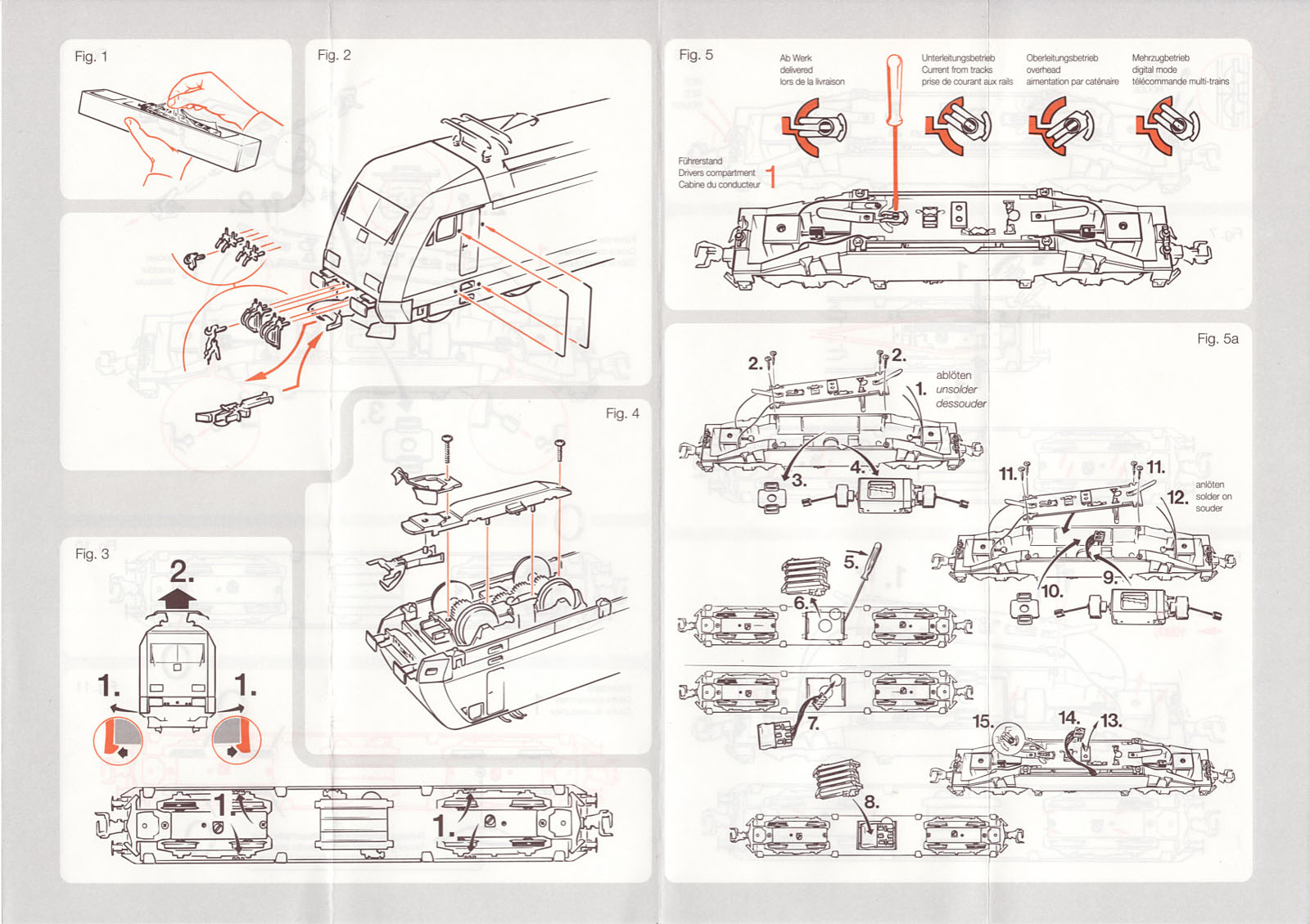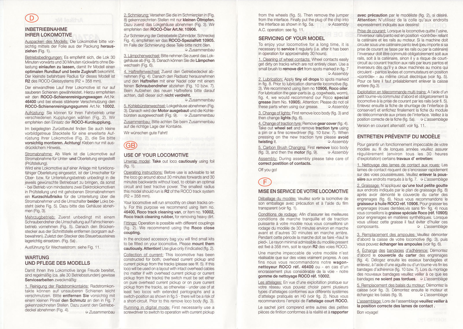 Mit der Zeit wurden natürlich auch die “Beipackzettel” wie die Beschreibung und die Ersatzteilliste verändert und den jeweiligen Modellen angepasst. Ich kann diese hier mangels aller Modelle zwar nicht vollständig zeigen, aber dann doch eine ganz brauchbare Auswahl, immer den jeweiligen Bestellnummern der Anleitung der Lok zugeordnet. Beim Anklicken der einzelnen Bilder werden diese vergrößert dargestellt. |