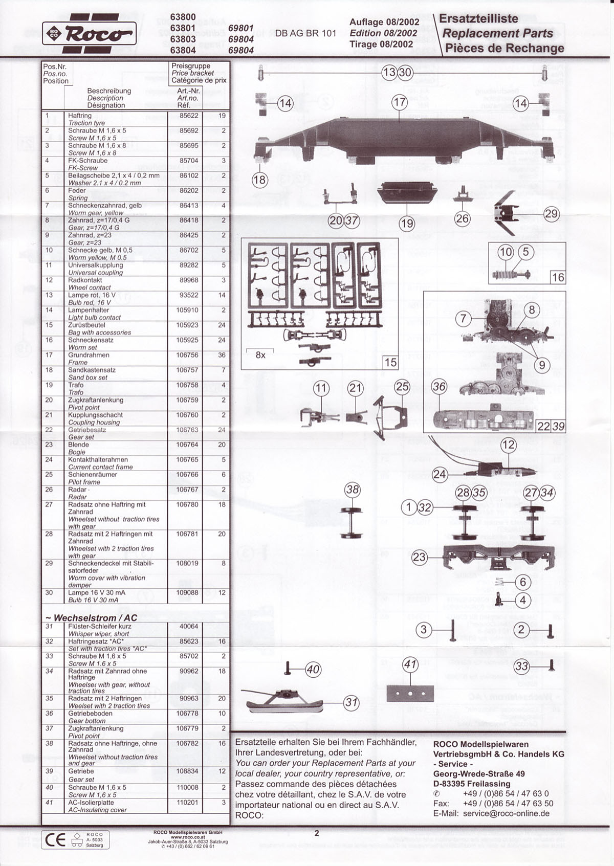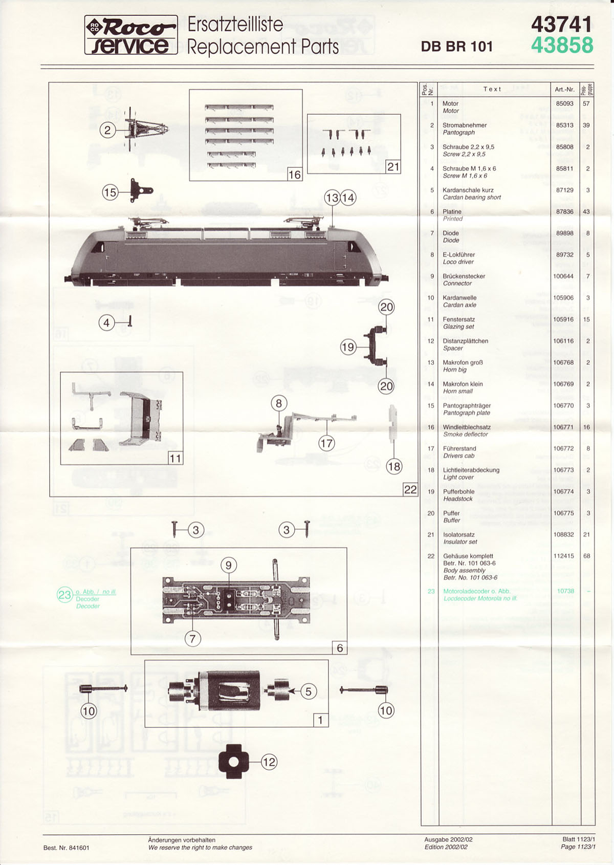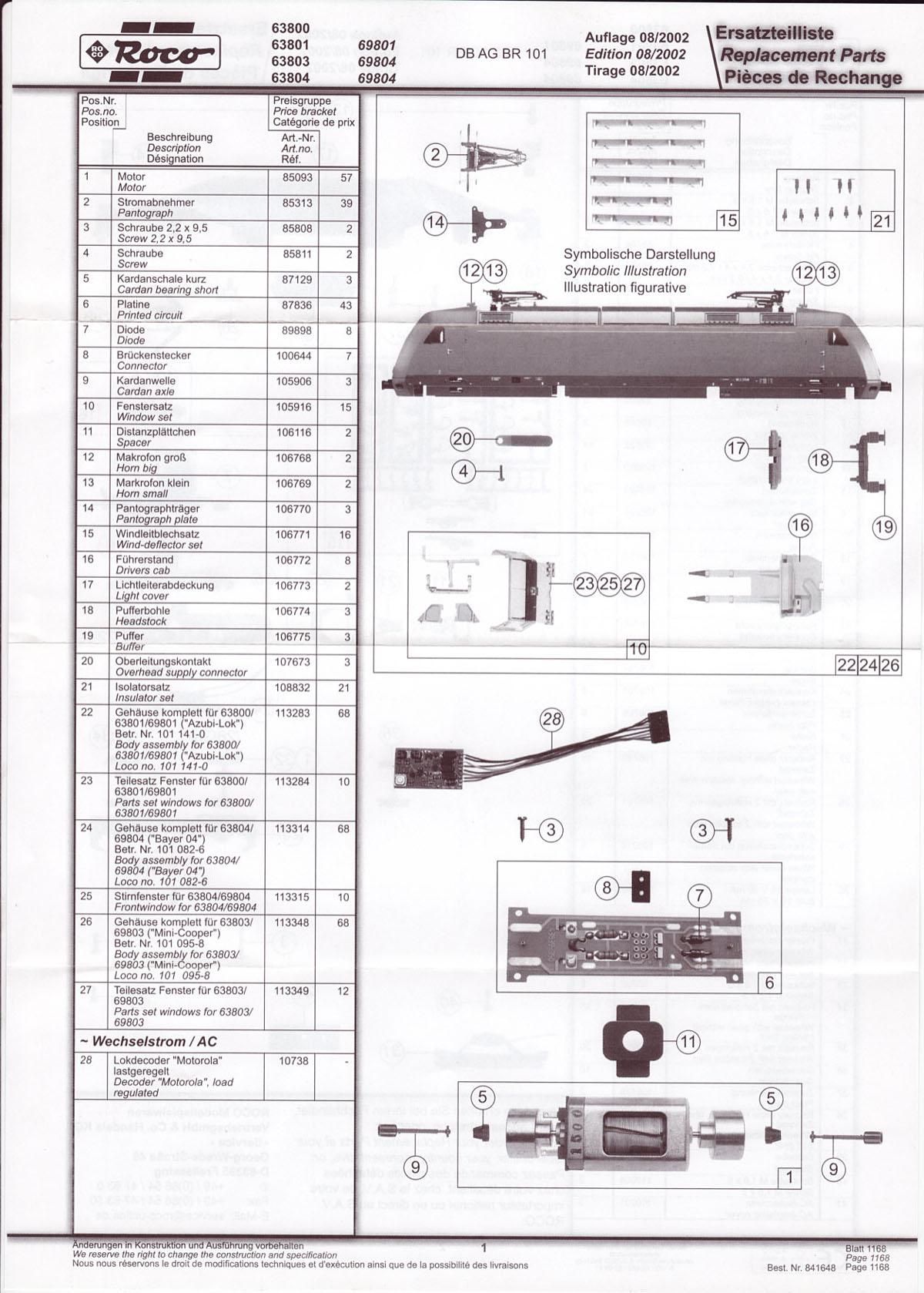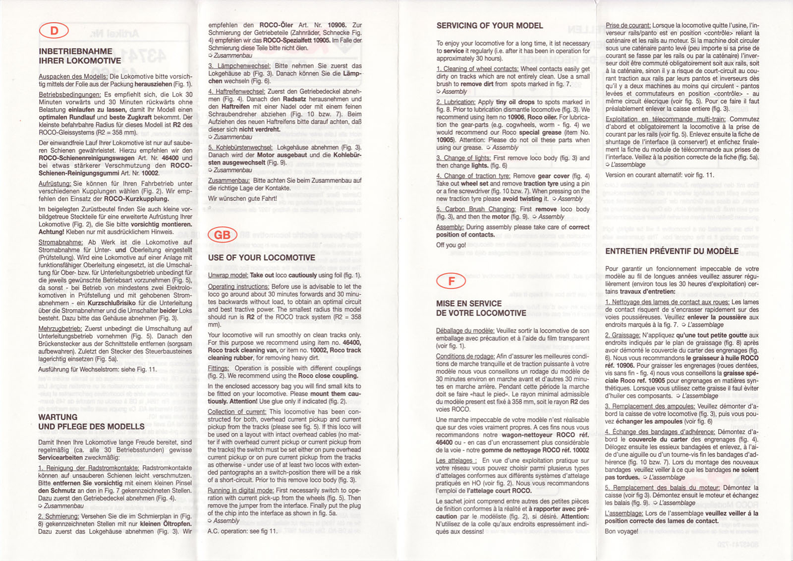 Mit der Zeit wurden natürlich auch die “Beipackzettel” wie die Beschreibung und die Ersatzteilliste verändert und den jeweiligen Modellen angepasst. Ich kann diese hier mangels aller Modelle zwar nicht vollständig zeigen, aber dann doch eine ganz brauchbare Auswahl, immer den jeweiligen Bestellnummern der Anleitung der Lok zugeordnet. Beim Anklicken der einzelnen Bilder werden diese vergrößert dargestellt. |