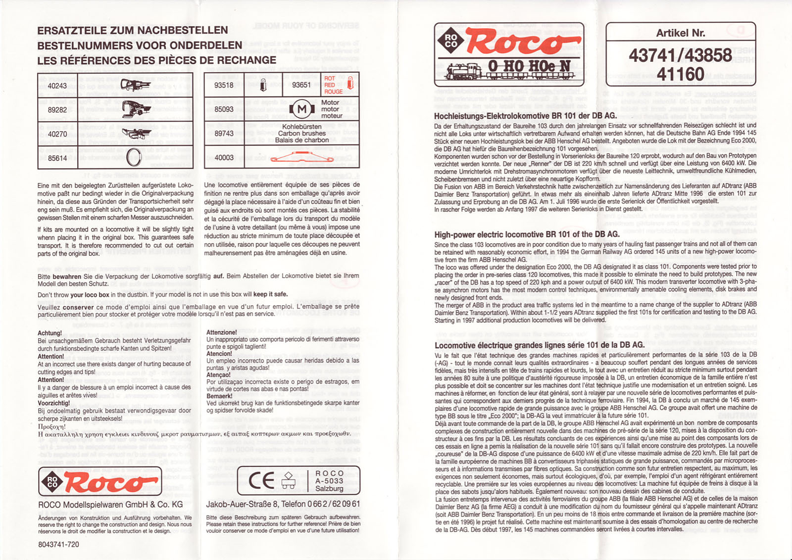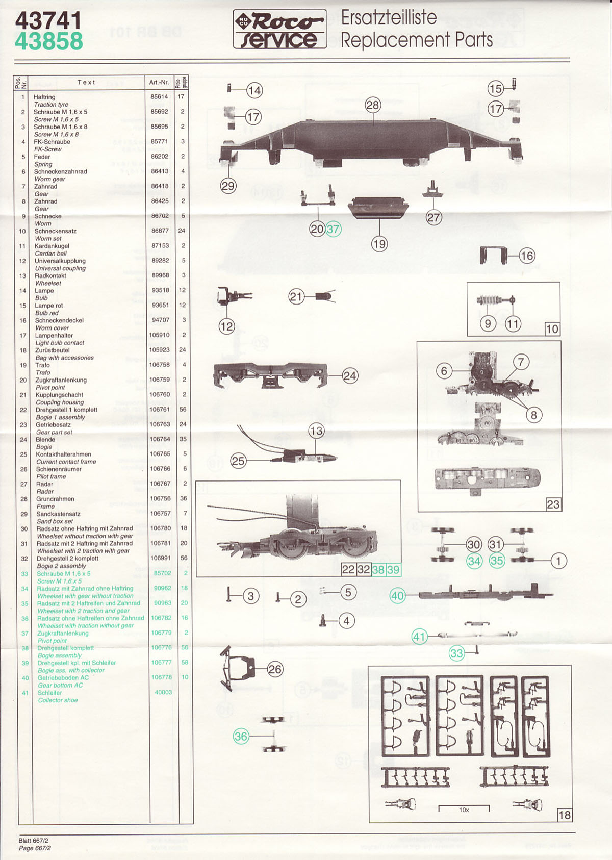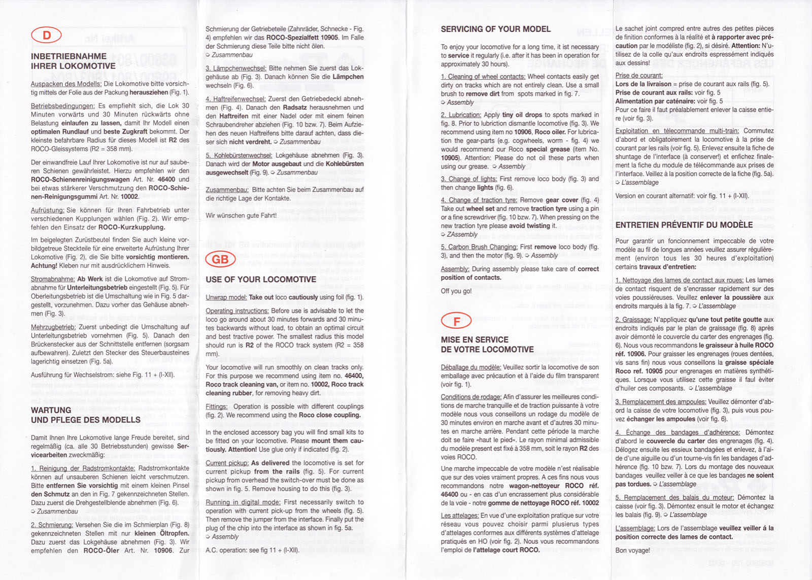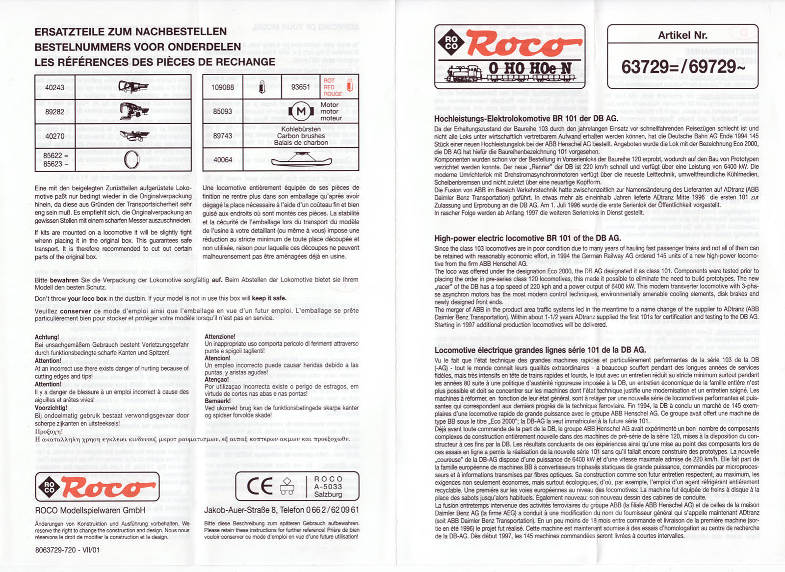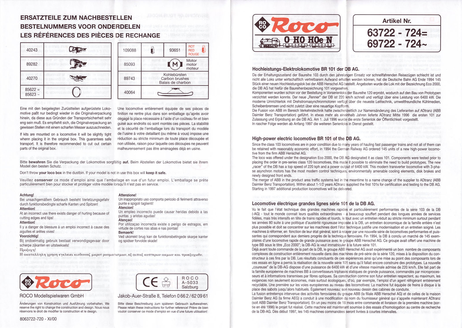 Mit der Zeit wurden natürlich auch die “Beipackzettel” wie die Beschreibung und die Ersatzteilliste verändert und den jeweiligen Modellen angepasst. Ich kann diese hier mangels aller Modelle zwar nicht vollständig zeigen, aber dann doch eine ganz brauchbare Auswahl, immer den jeweiligen Bestellnummern der Anleitung der Lok zugeordnet. Beim Anklicken der einzelnen Bilder werden diese vergrößert dargestellt. |