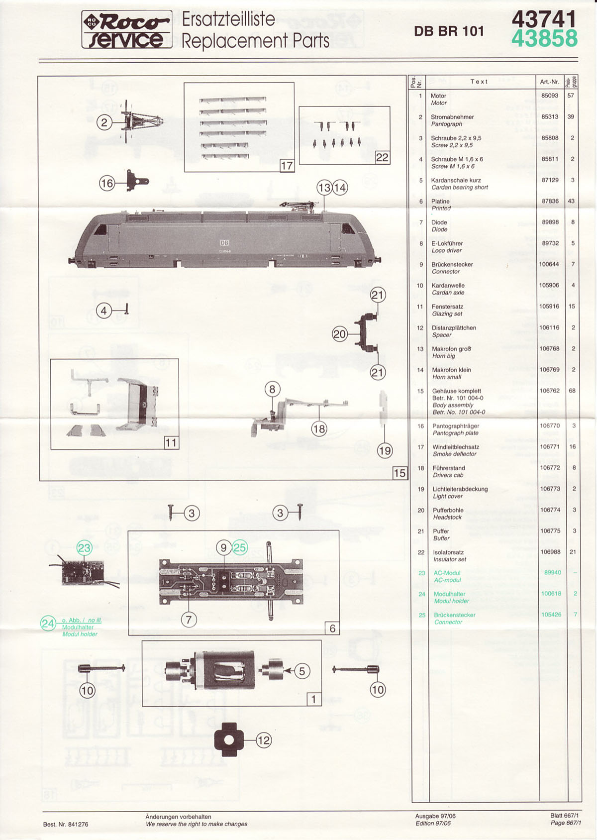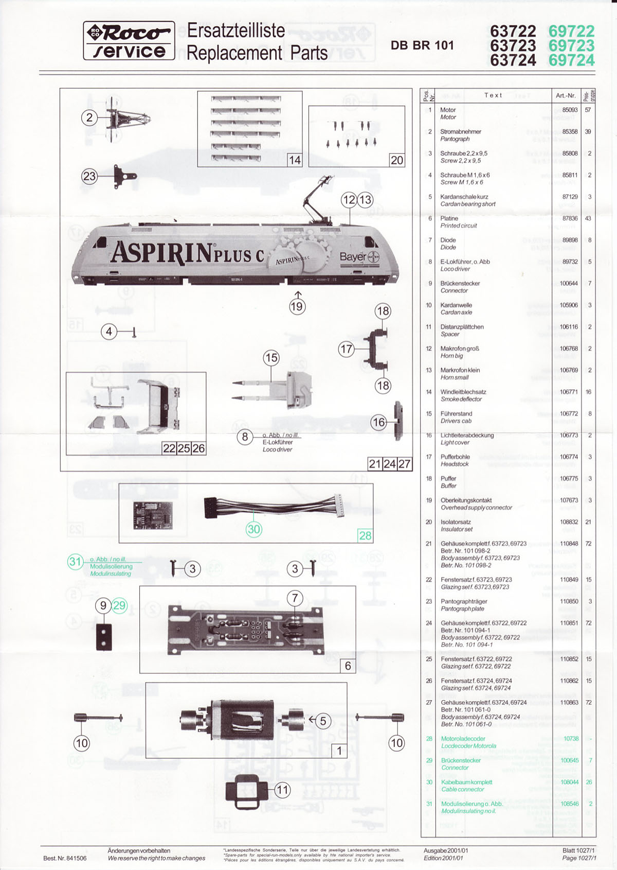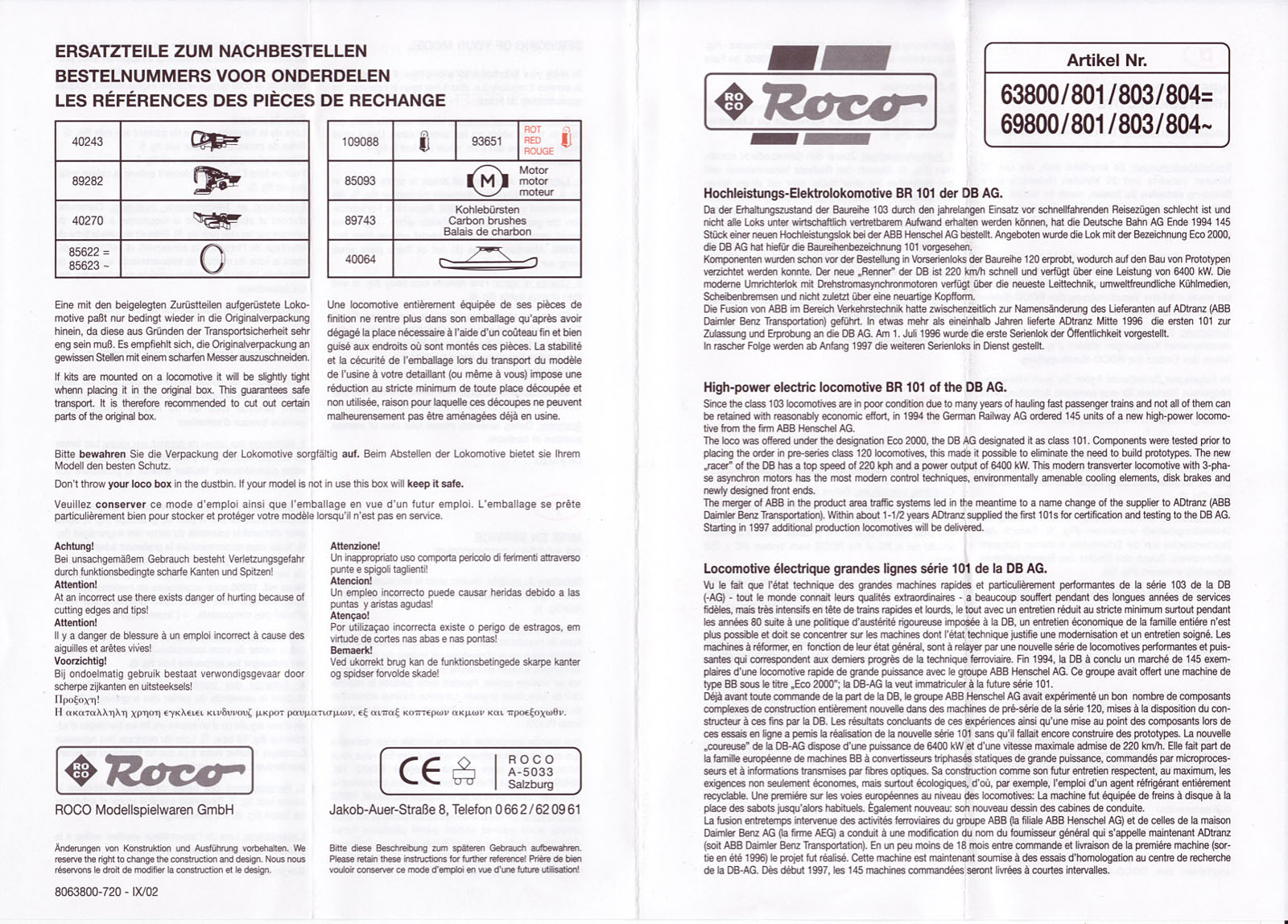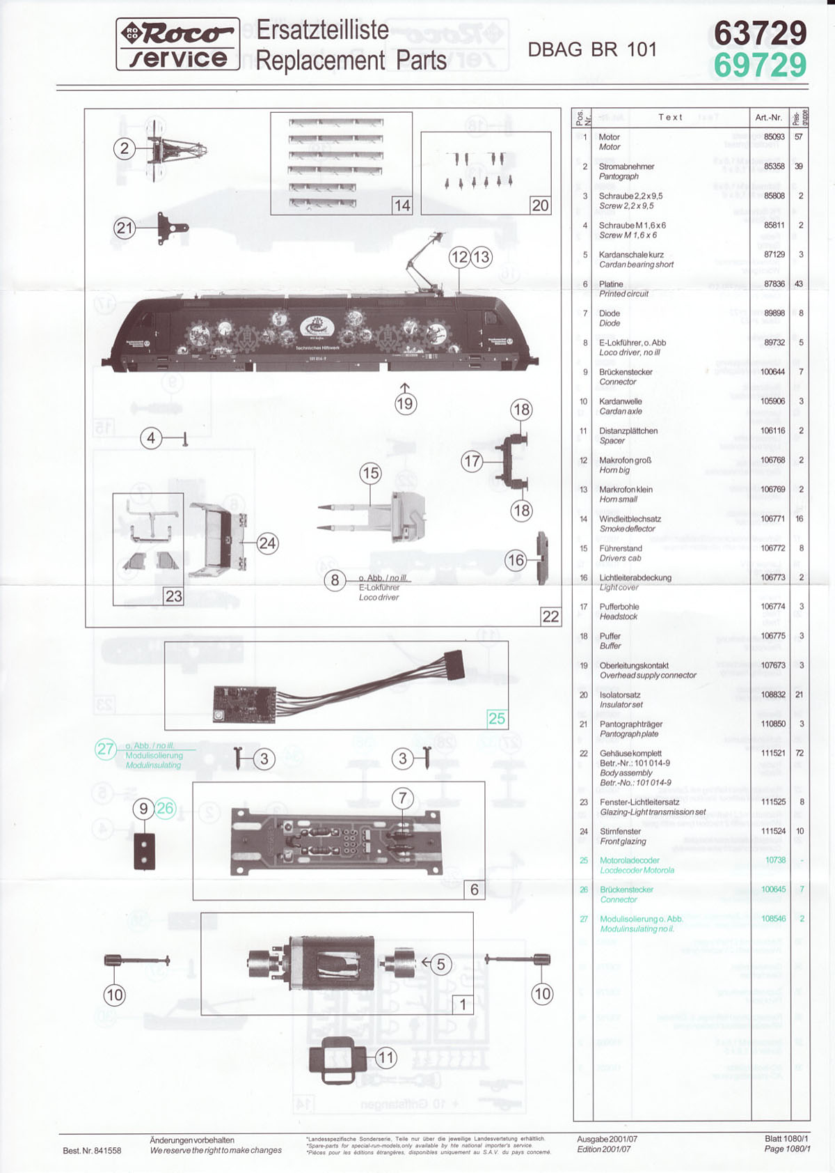 Mit der Zeit wurden natürlich auch die “Beipackzettel” wie die Beschreibung und die Ersatzteilliste verändert und den jeweiligen Modellen angepasst. Ich kann diese hier mangels aller Modelle zwar nicht vollständig zeigen, aber dann doch eine ganz brauchbare Auswahl, immer den jeweiligen Bestellnummern der Anleitung der Lok zugeordnet. Beim Anklicken der einzelnen Bilder werden diese vergrößert dargestellt. |