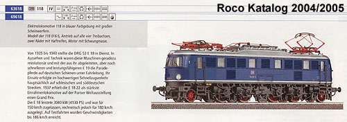 Eine Sonderserie vom Spielzeugring/Vedes/MC erweiterte im Sommer 2001 wieder das Angebot an Modellen der 118. Hier erschien die grüne 118 034-8 mit den modernisierten Lampen der ersten Serien. Im Sommer 2003 erschien eine weitere Sonderserie bei Eurotrain mit der beige/türkis lackierten 118 049-6. Interessanterweise hat auch dieses Modell wieder die Stilaugen der ersten Roco Auflage erhalten. Evtl. ein Vorbote auf weitere Modelle? Falls ja, dann sollte Roco allerdings auch die Stilaugen verkleinern, denn in dem Eurotrain-Flyer sind deutlich die zu großen Lampen der alten Ausführung zu sehen. |