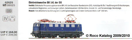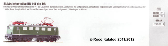 Es erschien dann auch nach einem Jahr Pause im Jahr 2006/2007 wieder ein Roco Katalog. Die grüne 141 war noch vorhanden, aber nur noch in der Gleichstromausführung. Auch der Katalog 2007/2008 zeigte weiterhin die grüne 141 115-6. Dafür gab es im Herbst 2007 einen Zuwachs der 141er-Familie, aber nur in Wechselstrom. So wurde erneut eine blaue 141 der Epoche IV mit waagrechten Lüftern und Regenrinne aufgelegt. Unter der Bestellnummer 69658 erschien die 141 024-0 im Programm. |