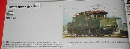 Zur Freude der Modellbahner und Sammler setzte Roco weiter damit fort, die Betriebsnummern zu ändern. Ab 1991 kam die 194 131-9 in die Händlerregale (jetzt stimmte die Nummer wieder mit der Dachleitung überein). Im Jahr 1993 folgte die 194 151-7, die mit dem sogenanten “Rallyestreifen” zwischen Rahmen und Mittelaufbau versehen war. Dabei handelt es sich um einen weißen Trennstreifen, mit dem die Betriebswerke München-Ost und Freilassing ihre 194er und auch 144er gekennzeichnet hatten. Insgesamt 19 Loks der Baureihe 194 waren so schon von weitem zu erkennen. Auch nach Umbeheimatungen blieb dieser Streifen erhalten. Als Neuheit 1994 erschien dann die Museumslok E94 279 als limitierte Sonderserie in der Roco Museumsedition zusammen mit einem Bildband über die Lok. Vorbildgerecht wurden nun die Änderungen an Dach, Vorbauten und Gehäuse vollzogen. Aber auch die bei der DR verbliebenen E94 wurden jetzt für Roco interessant und so wurde ebenfalls ein Modell der 254 052-4 der DR angekündigt (im Katalog noch als 254 110-0 abgebildet). |