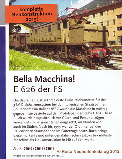 Aber auch danach wurde Gieffeci nicht müde, weitere Varianten anzubieten, die in der Modellübersicht aufgeführt sind. Erst der letzte mir vorliegende Gieffeci-Katalog von 2000/2001 enthält keine E626 mehr. Wie mir aber bekannt ist, sollen danach weitere Modelle erschienen sein, aber genaue Daten liegen nicht vor und so ist dies nicht gesichert. |
