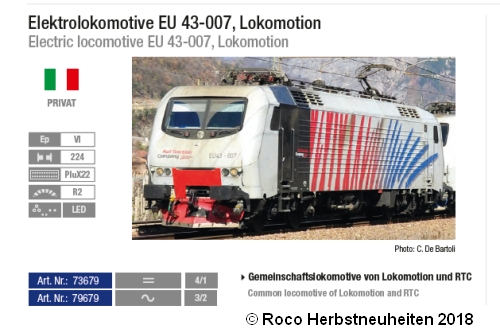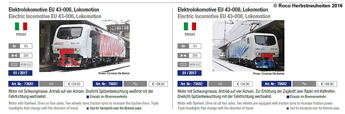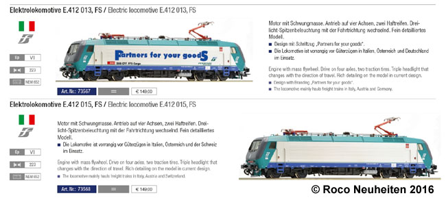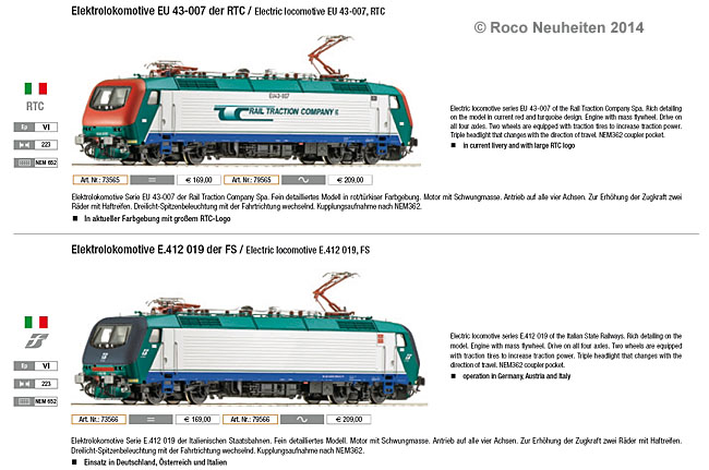 Kurzkupplungskulisse und 8-poliger NEM-Schnittstelle ausgestattet. Der Gieffeci Katalog gab auch gleich noch weitere Daten zum Vorbild, die auch im folgenden Roco Katalog übernommen wurden. Die