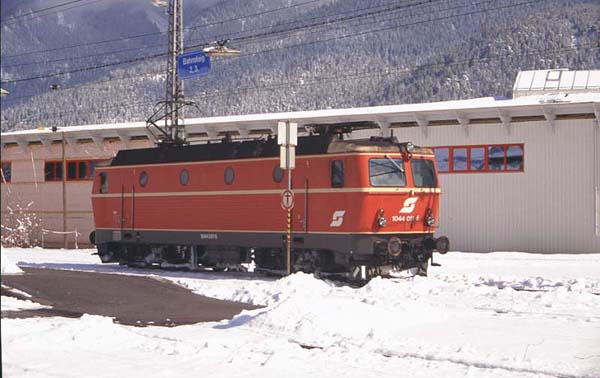 Beschriftungen/Aufkleber getragen. Bekannt sind mir dabei die 1044 043, die unterhalb des Führerstandes ein “Gösser”-Wappen trug, die 1044 045 mit stilisierten Skifliegern auf einer Front und unter zwei