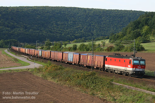 Die 1044 208 erhielt auf der verkehrsroten Fläche den Rail Cargo Austria Schriftzug.