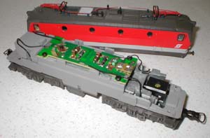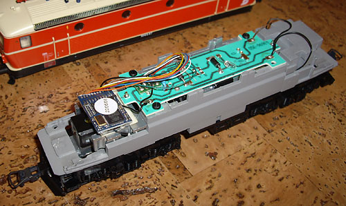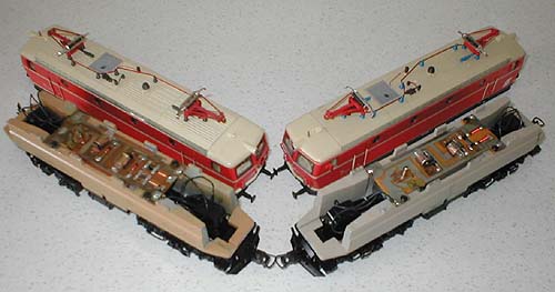 Erstserie kein Angebot für die “Märklinisten”. Aber bereits die 2. Roco Serie sah auch ein Wechselstrommodell vor. Dabei wurde nur noch ein Drehgestell angetrieben, da das andere zur Schleiferaufnahme diente. Die 1044 104 war