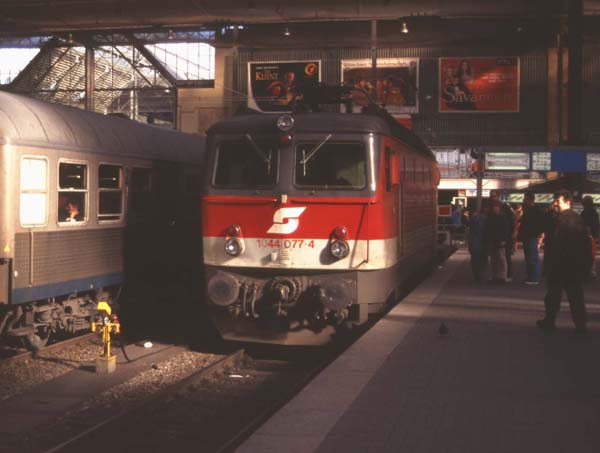 Die Lok, die bei Roco gleich zweimal erschienen ist: 1044 077-4 am 23.02.1997 in München Hbf. |