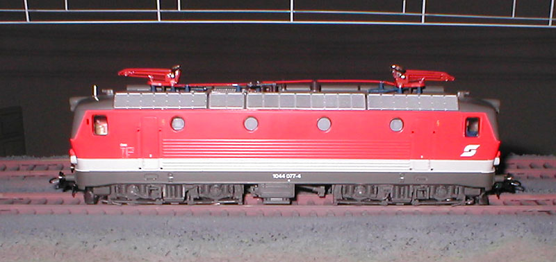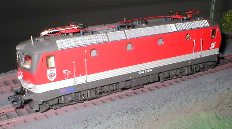 aufgedruckt. An der Front sind zwei davon neben dem ÖBB-Logo. Die Betriebsnummer wurde geändert, das Loch an der Front zum Einstecken der Betriebsnummer wurde verschlossen (Basis war die 1044 006). Alles sehr sauber
