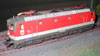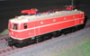 Kardanwelle ersetzt. Isolatoren und Stromabnehmerantriebe in hellem blau. Loknummer beim Modell zu hoch angebracht.
