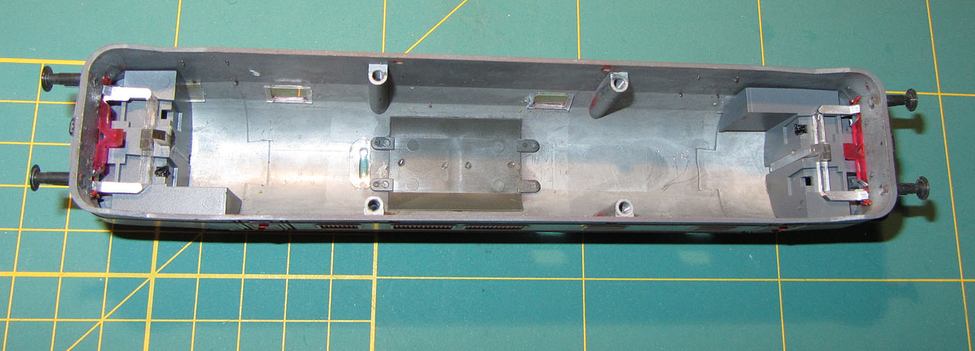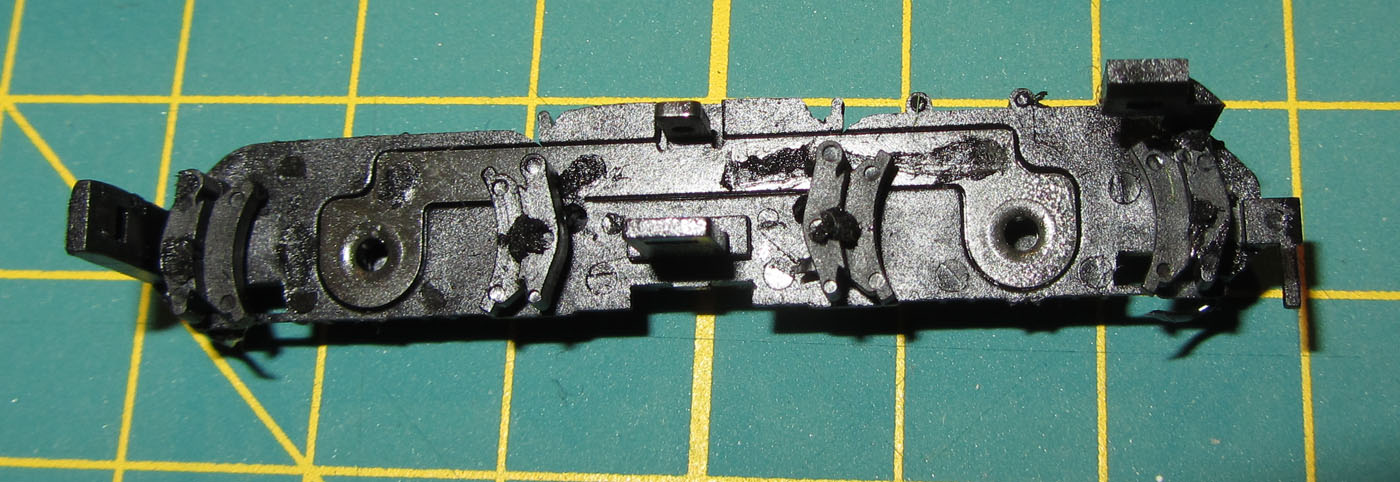 hinter den inneren Radsätzen und sind von unten leicht zugänglich, wenn man das Drehgesell einschlägt. Schrauben raus und Gehäuse nach oben abnehmen, das war schon alles. Das Gehäuse kann nicht falsch herum