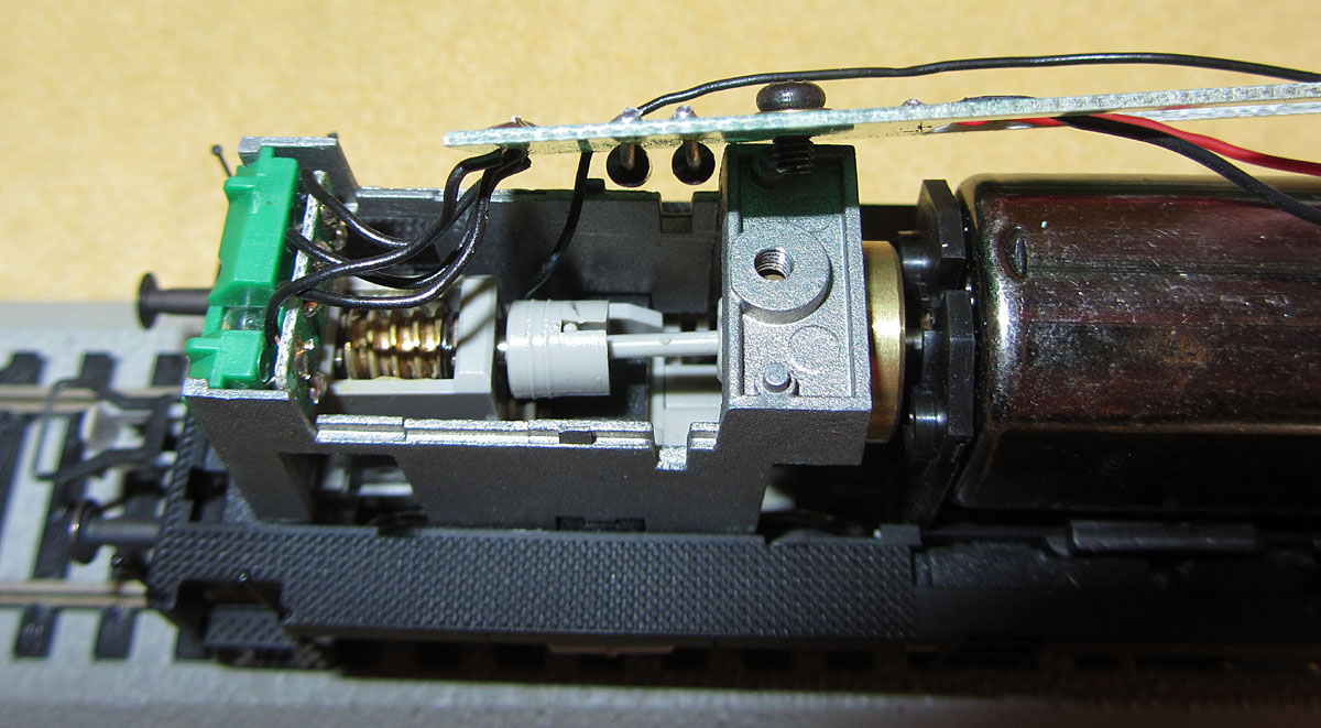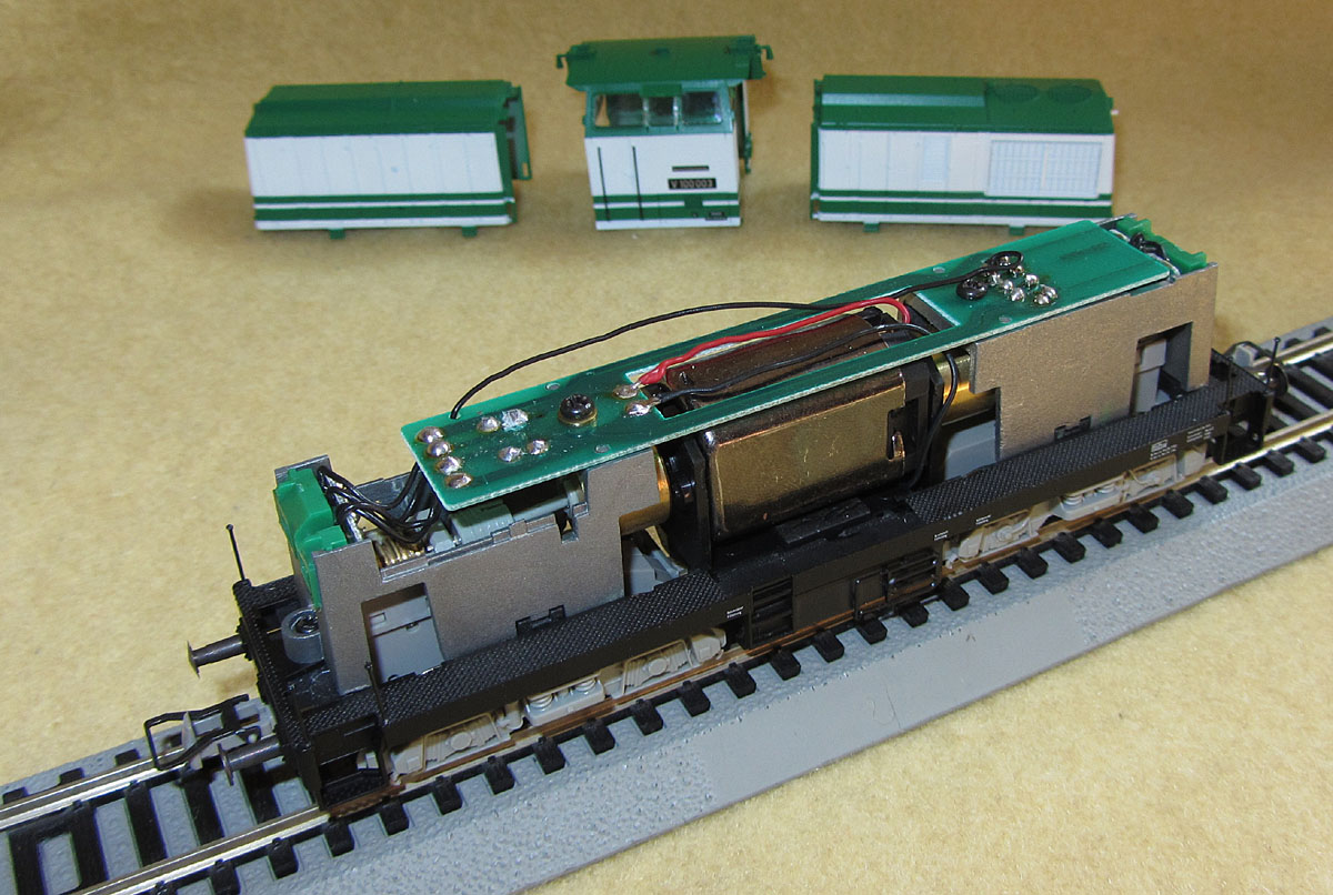 AC-Version befindet sich ein elektronischer Umschalter unter der Platine oberhalb des antriebslosen Drehgestells, der mit einer 4-poligen Steckverbindung angeschlossen ist. Platz für einen Decoder wäre aber dort
