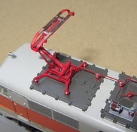 wie auch die beiden Hauben unter den Stromabnehmern eingesetzte Kunststoffteile sind. Gerade letztere sind hier etwas Besonderes, da sie die Version der späten Serie mit im Einholmstromabnehmer integriertem