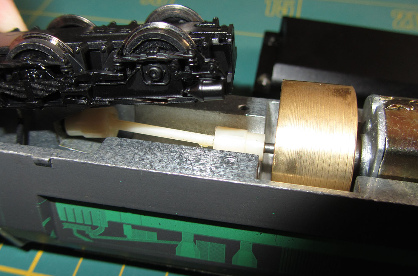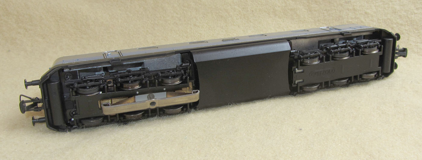 der den Innenraum fast komplett ausfüllt. Außerdem ist der Tank zwischen den Drehgestellen ein Metallblock. damit kommt das Modell auf ein grandioses Gewicht von 815 Gramm (AC-Version). Da muss mancher Modellbahner