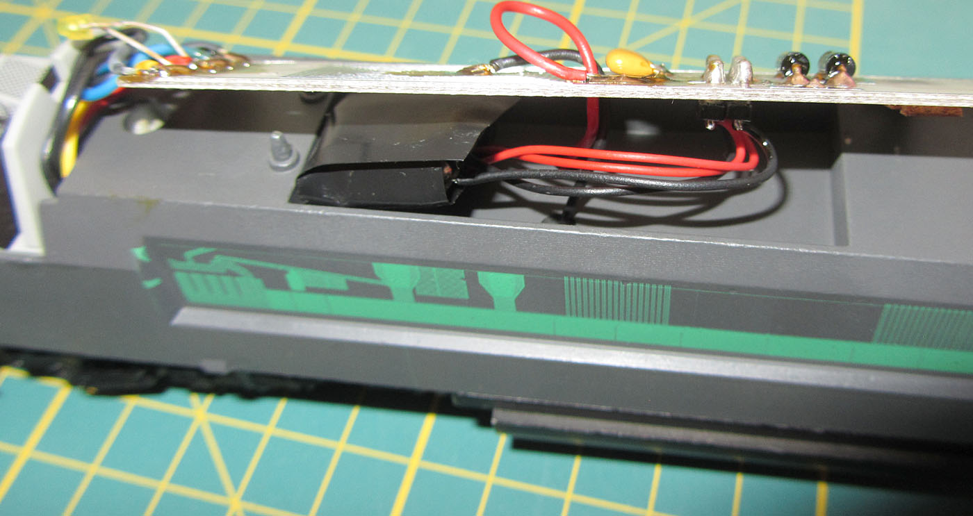 die Platine zu sehen, welche eine 8polige Schnittstelle besitzt. Der Decoder findet seinen Platz in einem Fach unterhalb der Platine. Von einem Motor ist jedoch nichts zu sehen. Dieser ist von der Unterseite des