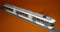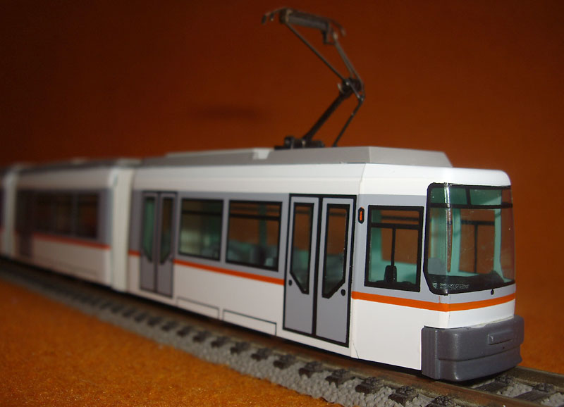 der erste 100%ige Niederflurgelenktriebwagen war. Bei der Fertigung wurden die Gehäuseteile komplett aus durchsichtigem Plastik gegossen und danach bedruckt. So erübrigte sich das Einsetzen von Fenstern. Allerdings