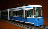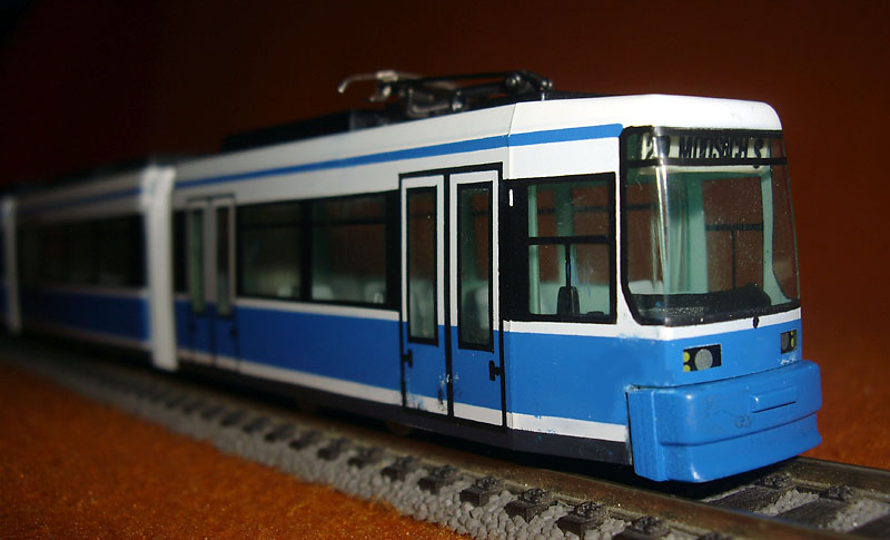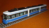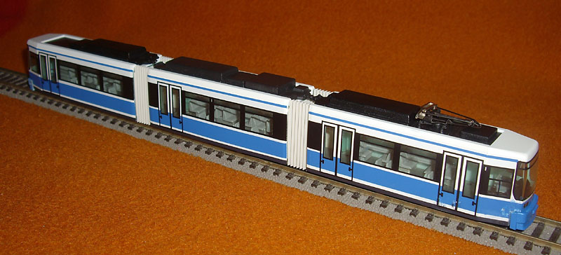der erste 100%ige Niederflurgelenktriebwagen war. Bei der Fertigung wurden die Gehäuseteile komplett aus durchsichtigem Plastik gegossen und danach bedruckt. So erübrigte sich das Einsetzen von Fenstern. Allerdings