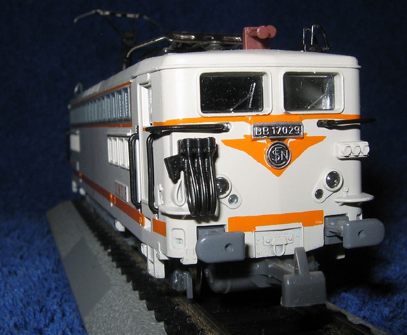 Gehäuse hat Jouef an der Lok deutliche Fortschritte gezeigt. So ist eine Anzahl von eingesetzten Teilen auf dem Dach zu finden (das Modell auf den folgenden Fotos hat leider ein fehlendes Dachteil). Die angesetzten