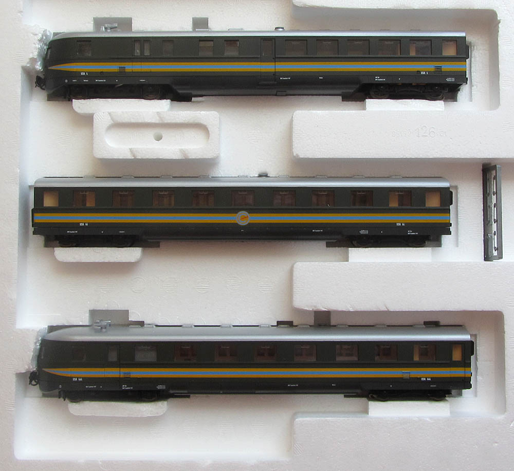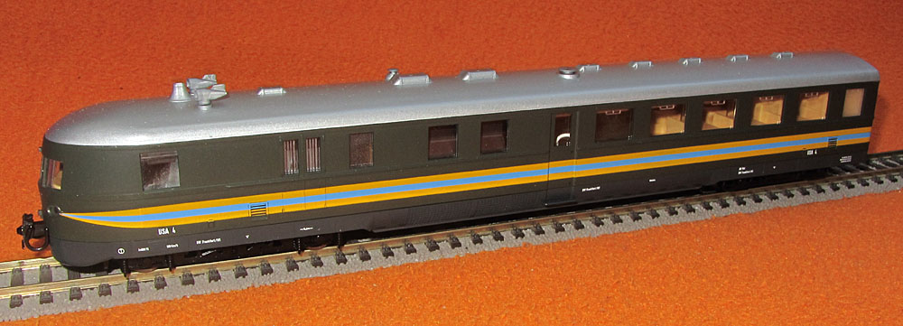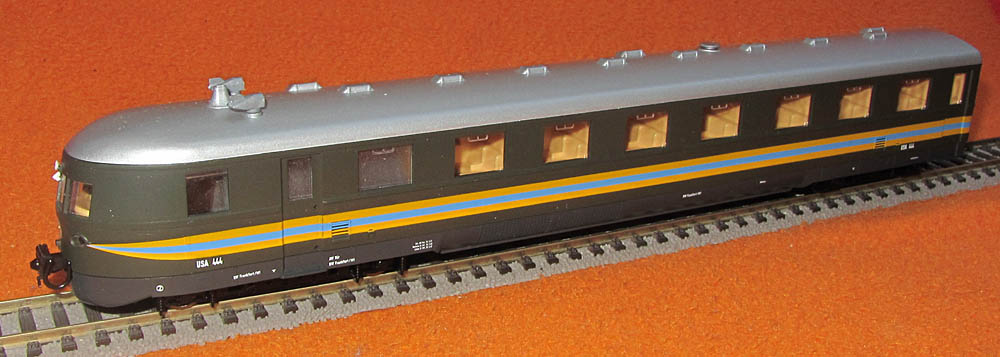 Lackierung mit dem gelb/blau/gelben Streifen ist dabei vorbildgerecht, da von dem Zug einige Fotodokumente existieren. Schließlich erhielt der Zug auch die DB Betreibsnummer VT06 109 zugeteilt, kam aber nicht als