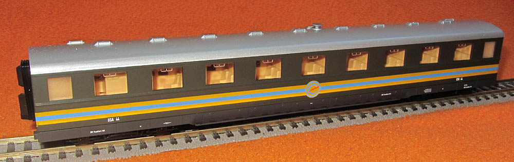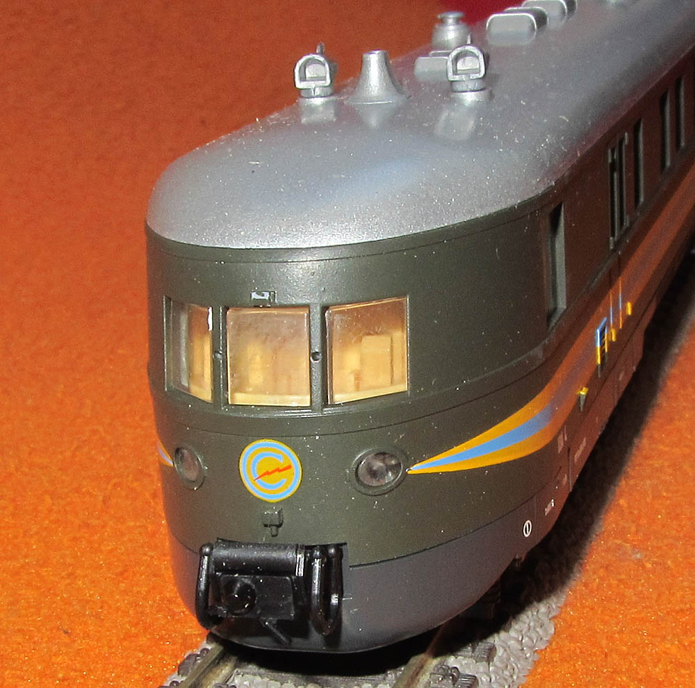 übereinstimmen, so ist auf den bekannten Bildern das Frontlogo größer und der Seitenstreifen läuft in einem Bogen nach oben aus, aber das sind eher Kleinigkeiten. Hier wurde ein sehr schöner Zug gefertigt, der
