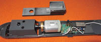 Plastik. Will man den Motor noch austauschen, dann ist der darüber gesetzte Gußrahmen zu entfernen, indem man die beiden kleinen sichtbaren Rastnasen, die in den Steg am Rahmen greifen aushebelt (auf beiden