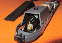 befndet sich ein elektronisches Umschaltrelais direkt hinter dem Motor. Das hintere Drehgestell trägt dabei den Schleifer für die Mittelkontakte.