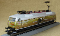 Künstler Teun Hocks gestaltet und man kann die Lok daher durchaus als “Kunstlok” bezeichnen. Es ist vorbildgetreu, dass der Schriftzug “Die Bahn verbindet” nur auf einer Seite angebracht wurde. Dafür ist nur auf der