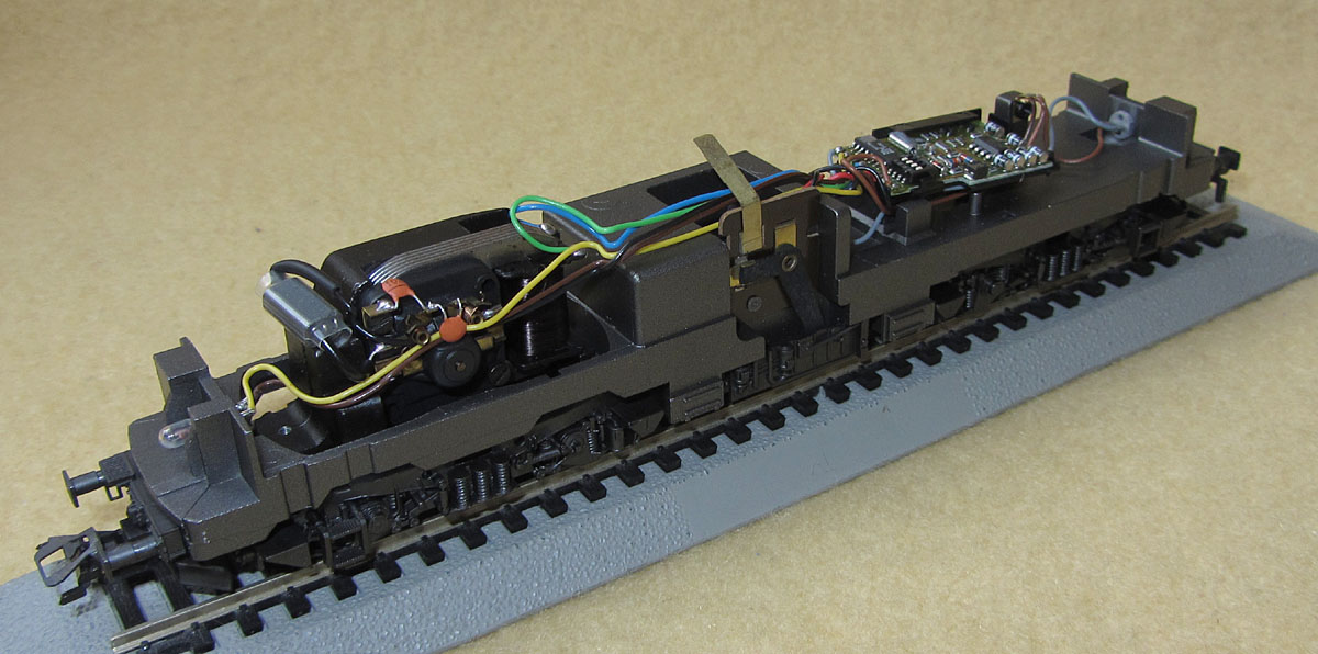 Der Märklin Rundmotor treibt die beiden Achsen eines Drehgestells an. Dort ist
