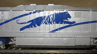 blau/silber, blauer Tiger seitlich, Rahmen silber, Drehgestelle silber/blau