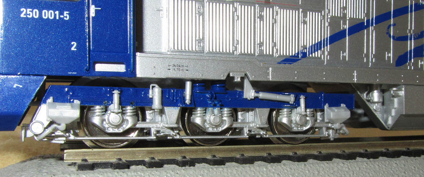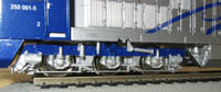 freistehend und an den Drehgestellen sind die Sandkästen und Dämpfer einzeln angesetzt (die sich aber zum Teil auch leicht lösen). Die großen Lüftungsgitter auf dem Dach sind zwar schön graviert, könnten aber