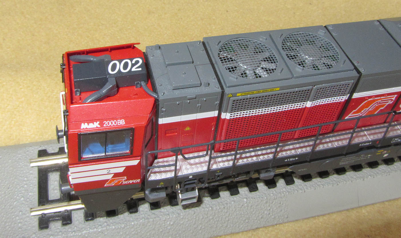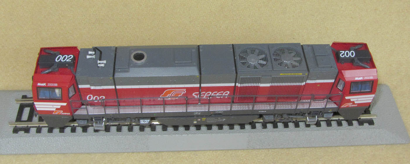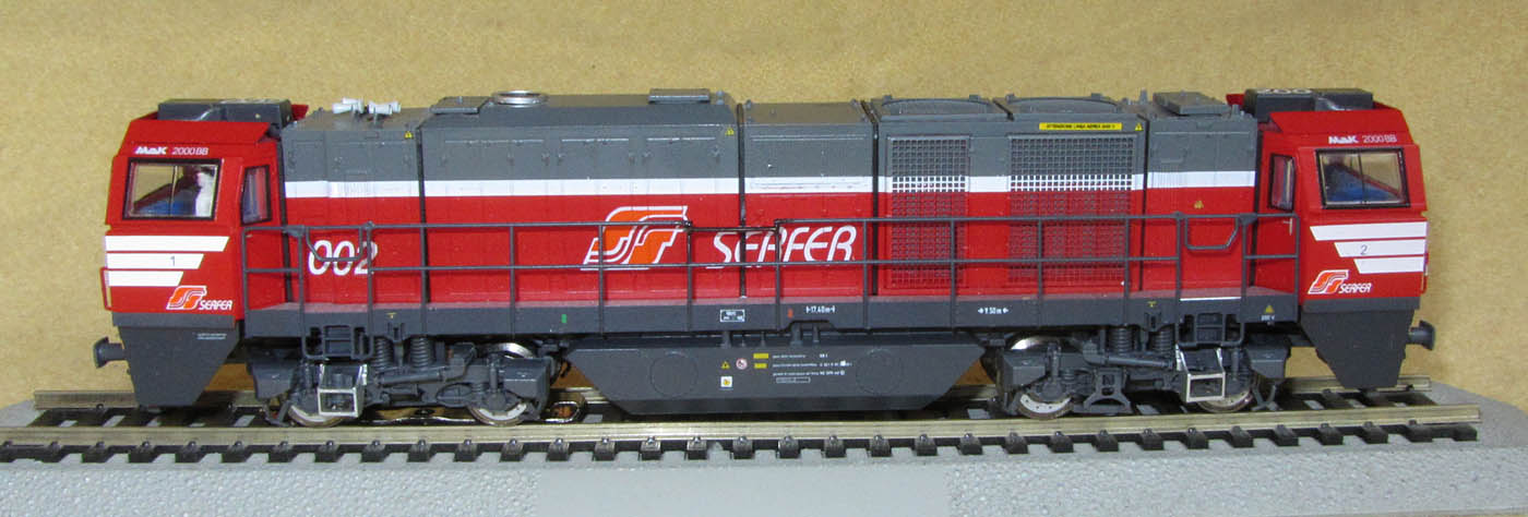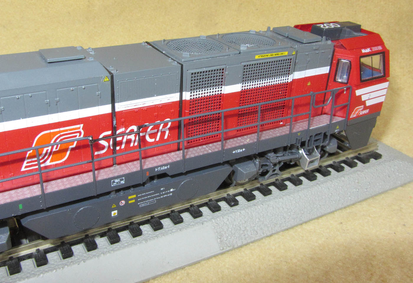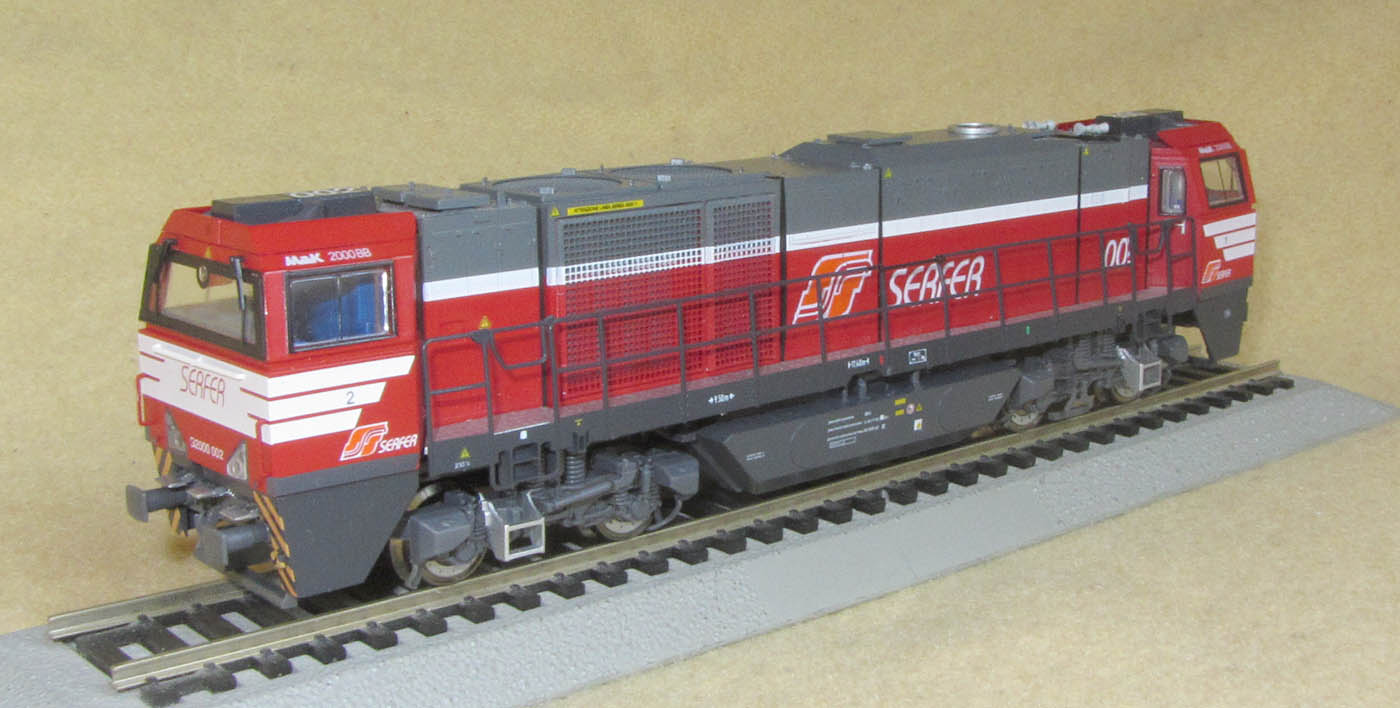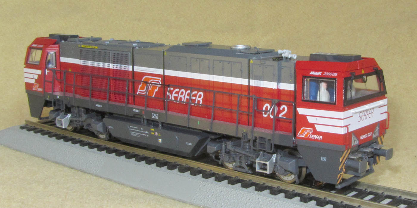 Führerstand. Mehano hatte auch die asymetrische Version im Programm und beide Modelle in einer Vielzahl von Lackierungsvarianten. Diese Variante der italienischen SerFer war als Neuheit 2004 im Katalog, jedoch nur