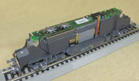 durch den Skischleifer. Die Beleuchtung erfolgt über LEDs. Der Decoder findet seinen Platz im Tank unterhalb des Motors und ist dort von unten zugänglich. Ein Lautsprecher kann unterhalb der