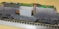 und dann kann das Gehäuse mit Rahmen, ggf. mit leichtem Schütteln, nach oben abgenommen werden. Es gibt sonst keine weiteren Rastnasen. Beim Umdrehen der geöffneten Lok bitte auf die Ventilatoren achten, die sind