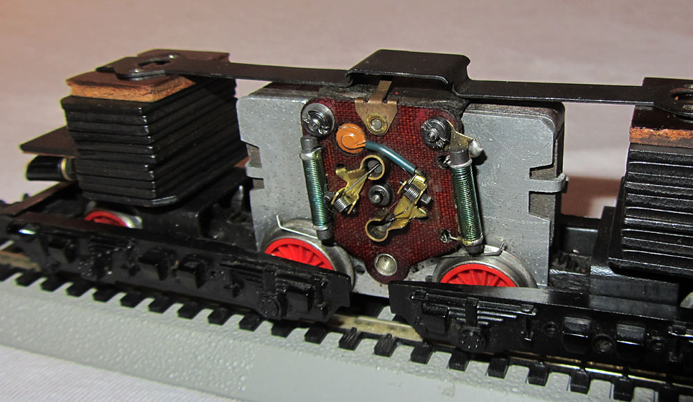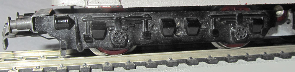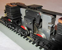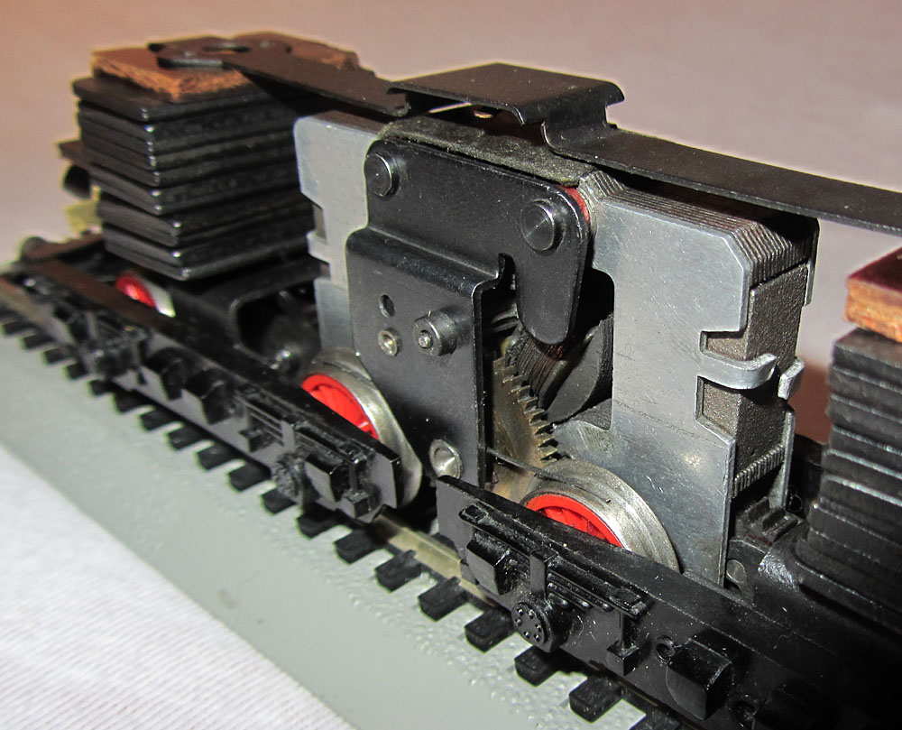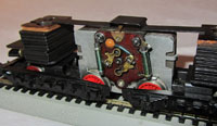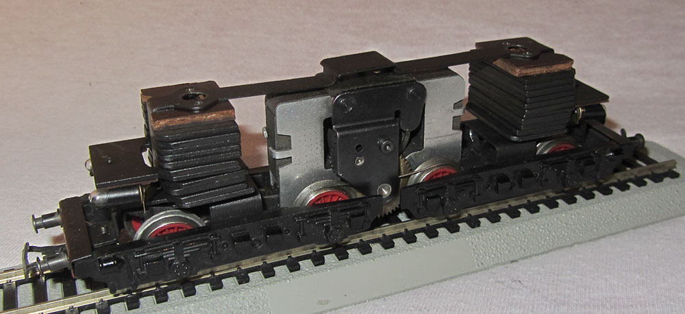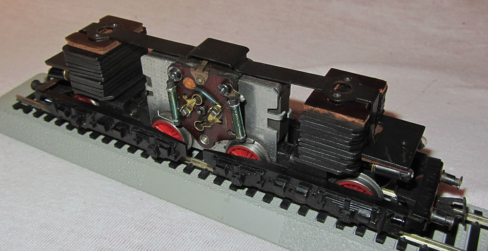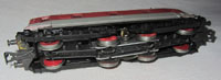 Antriebsgestells. Die Vielzahl an Metallplatten im Inneren bringen die Lok auf ein Gewicht von ca.340 Gramm.