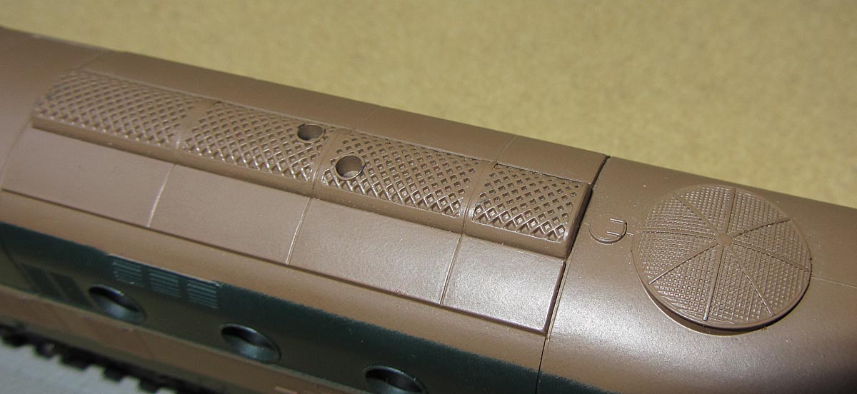 freistehende Griffstangen. Die Fenster sind nur hinterlegt. Das Vorbild wird aber trotzdem sehr gut und überzeugend getroffen. Die Vielzahl an Lüftungsgittern wurde sauber nachgebildet und gerade das Dachgitter