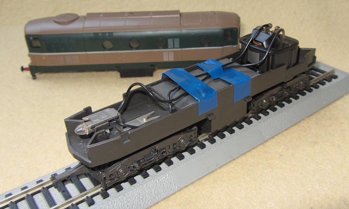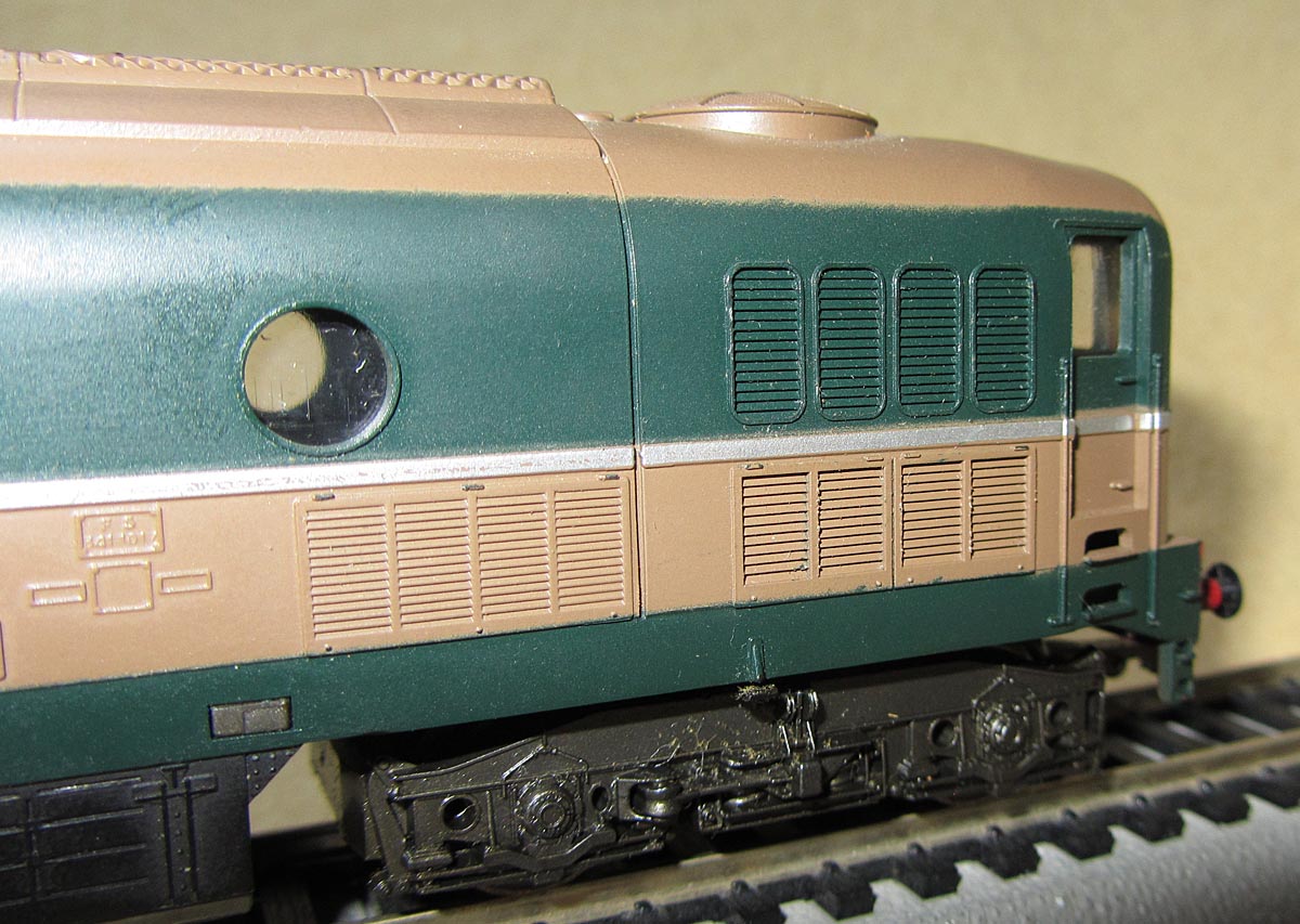 klein und erhaben ausgeführt worden). Zudem wurde ein gelbes “A” aufgedruckt, welches die vordere Lokfront kennzeichnet. Da Rivarossi das “A” aber diagonal versetzt aufgedruckt hat, passt das nicht. Es gehört auf